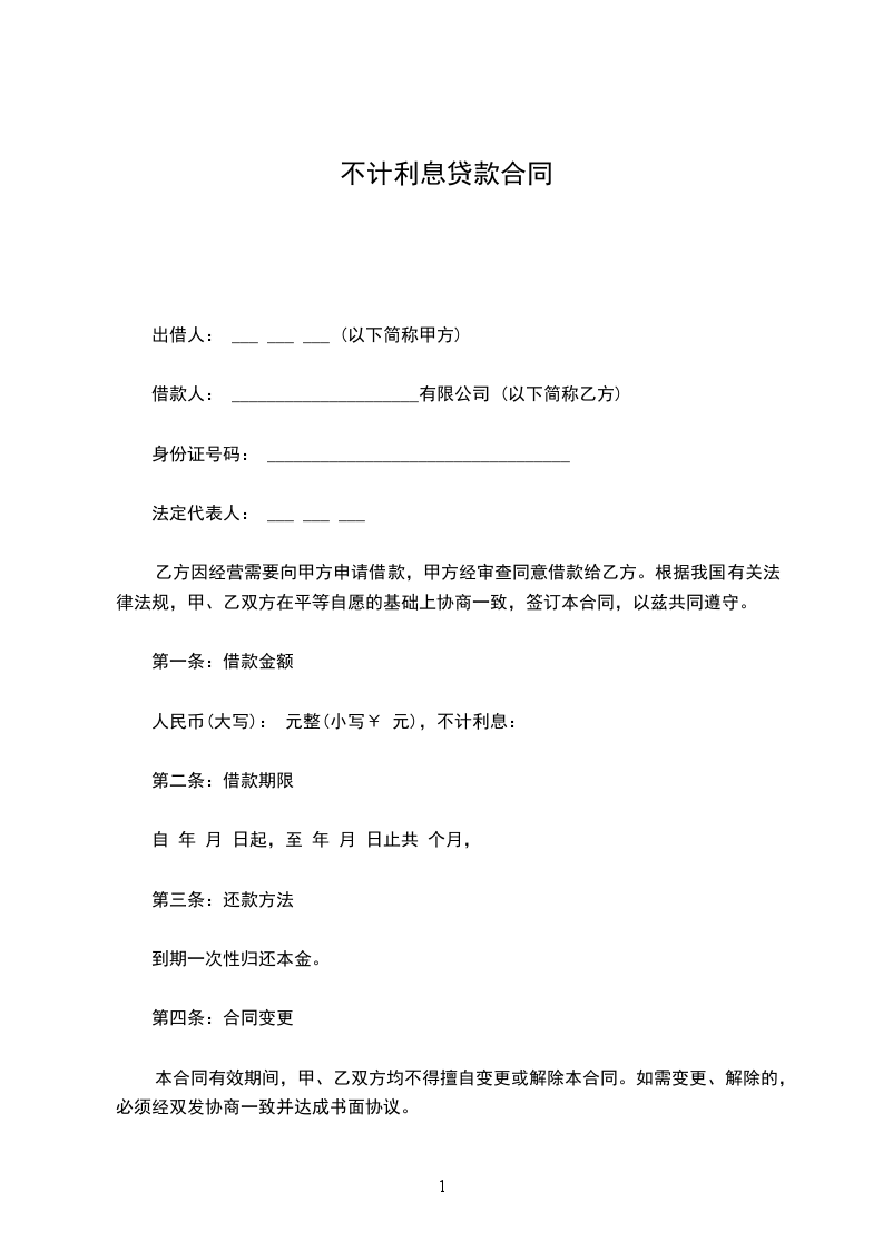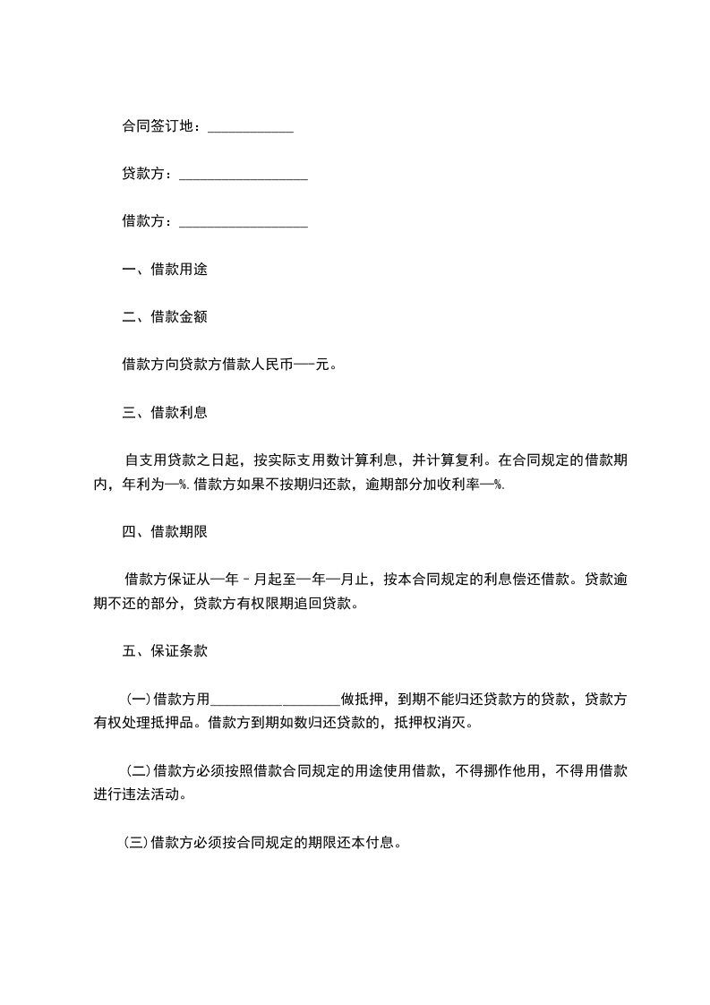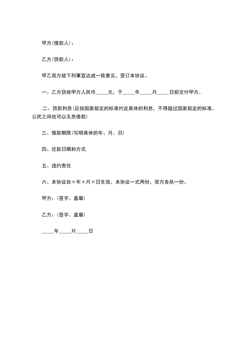 一、乙方贷给甲方人民币_____元,于_____年_____月_____日前交付甲方。