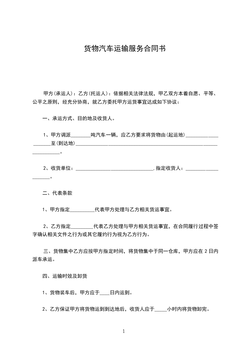 1、甲方调派________吨汽车一辆,应乙方要求将货物由(起运地)____________________至(到达地)____________________________________________________________________。
