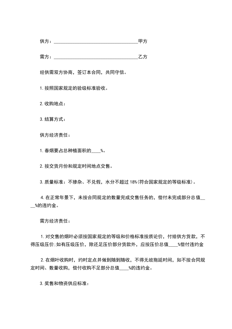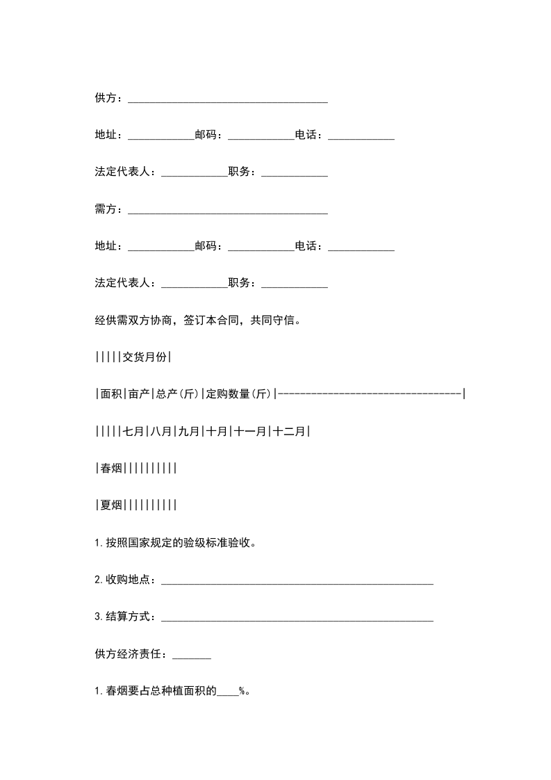 _3.结算方式:_________________________________________________供方经济责任:1.春烟要占总种植面积的____%。