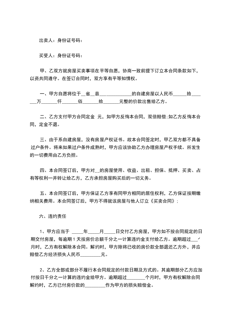 (1)由于本房产暂无《不动产登记证》,当前无法办理正式的房产过户手续,本次交易属甲乙双方协商议定,因此待到该房产可以办理《不动产登记证》时,甲方有义务在第一时间主动配合乙方完成办理房产过户手续,不得借故拖延。