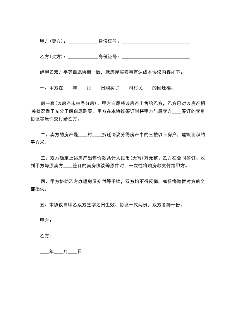 甲方自愿将座落于_____________________出售给乙方,乙方自愿购买此房。