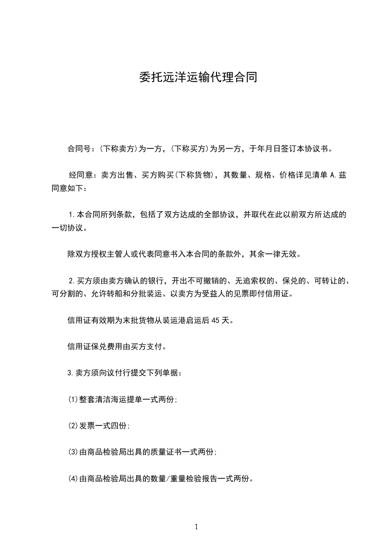 (4)买方应将租船方出具的租船单一份尽快提交给卖方。
