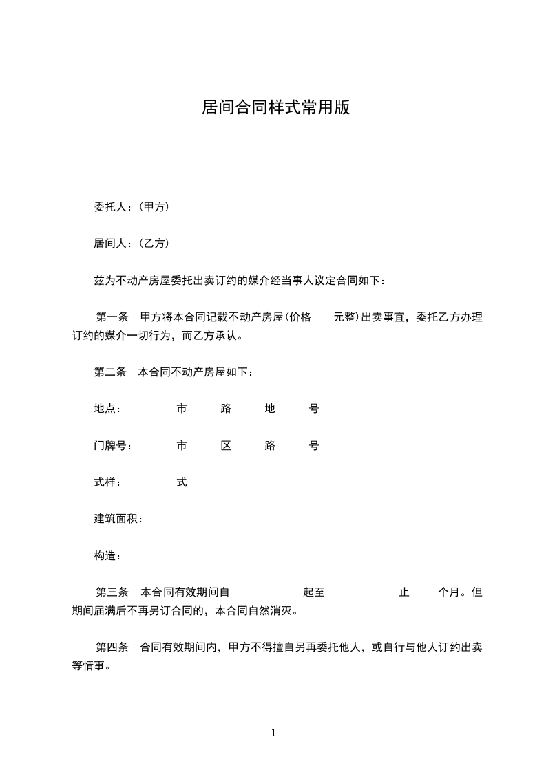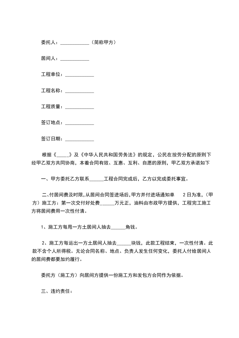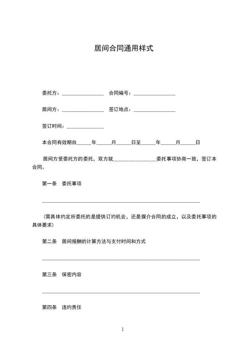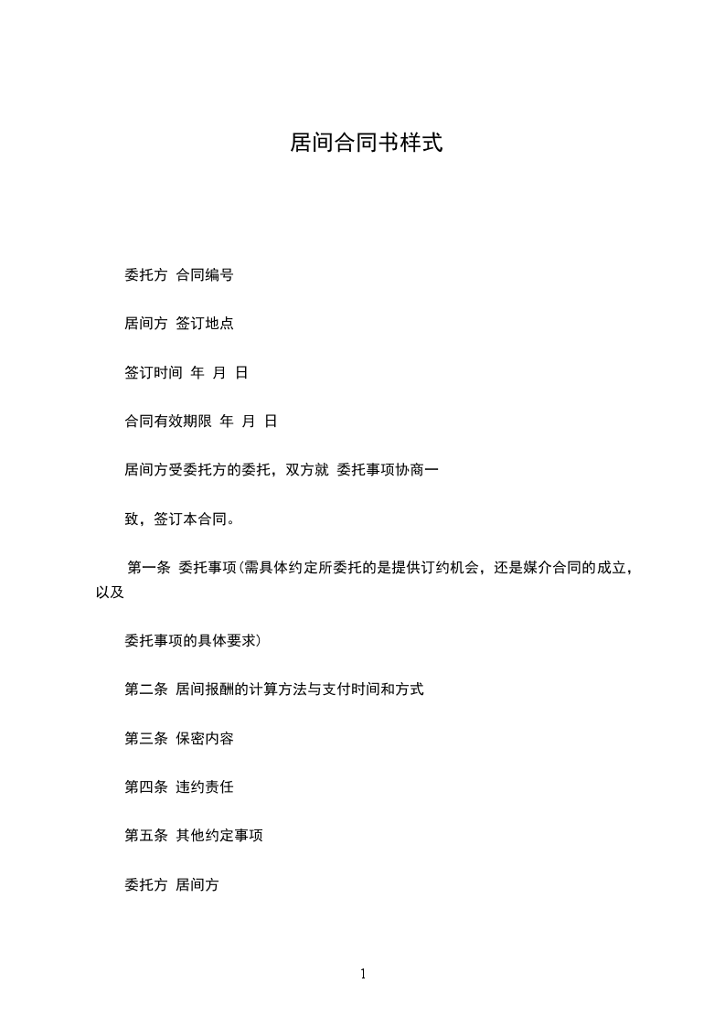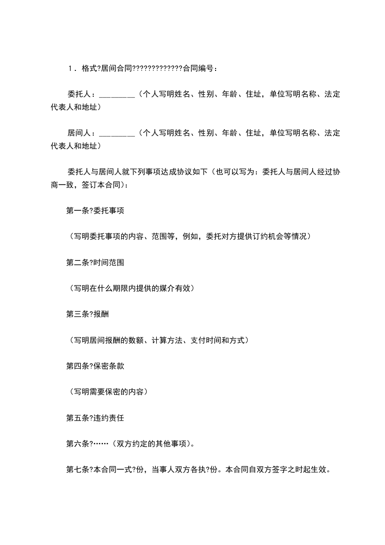 第一条 委托事项(需具体约定所委托的是提供订约机会,还是媒介合同的成立,以及