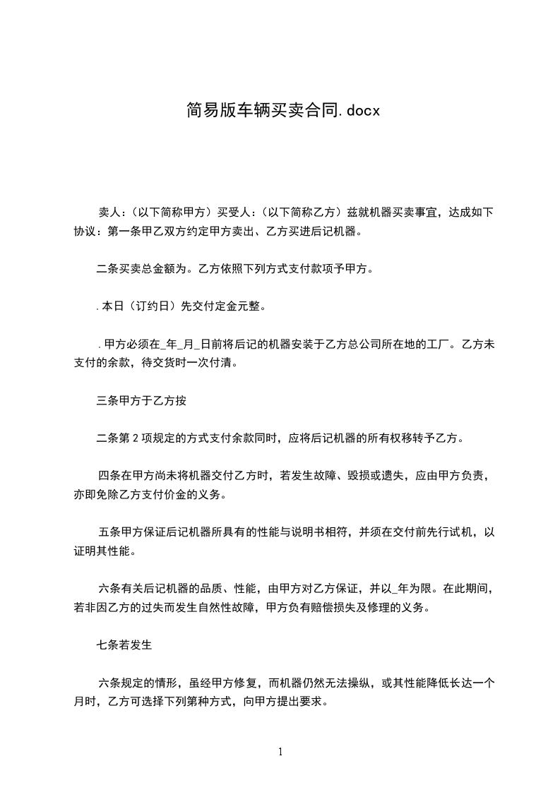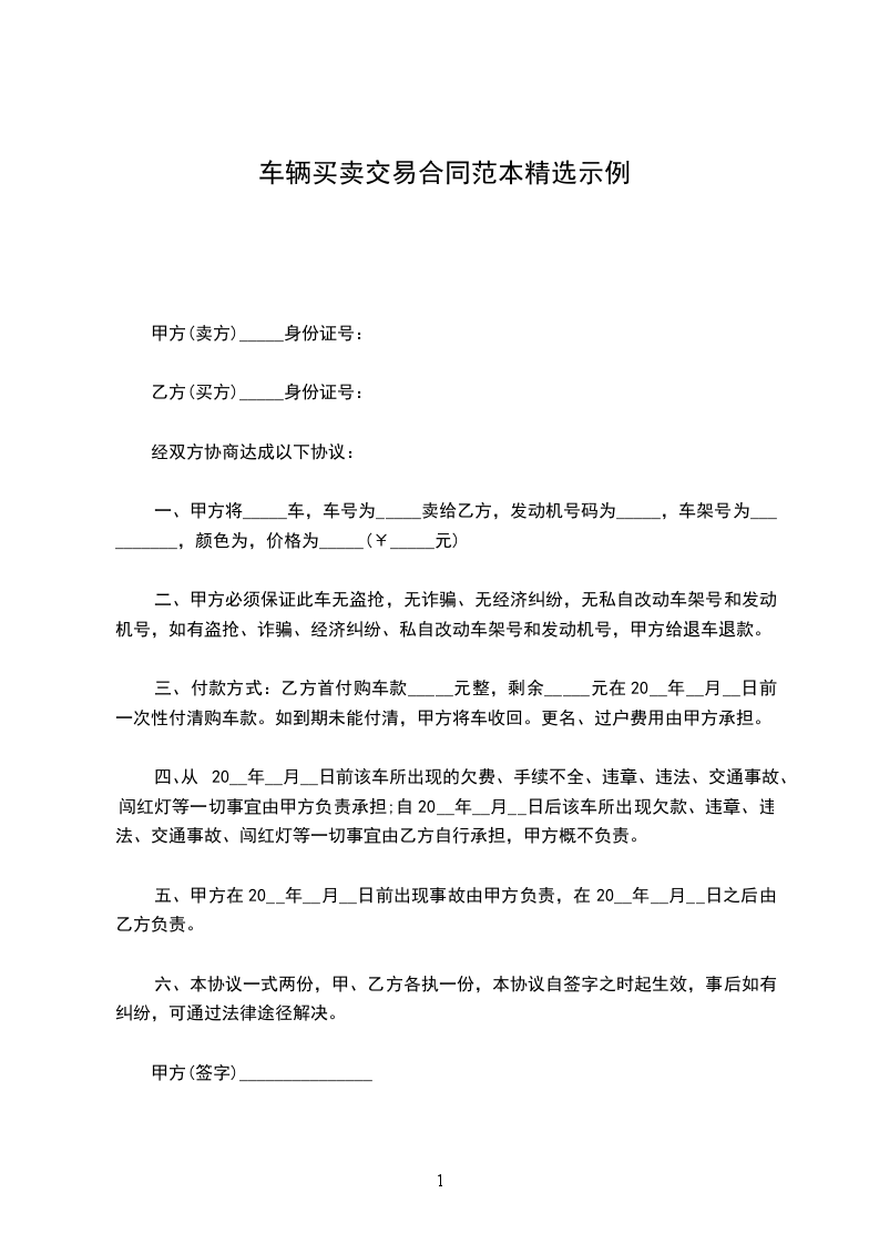 1、甲方向乙方转让 汽车壹辆:发动机号为_________,底盘号为___________ 。