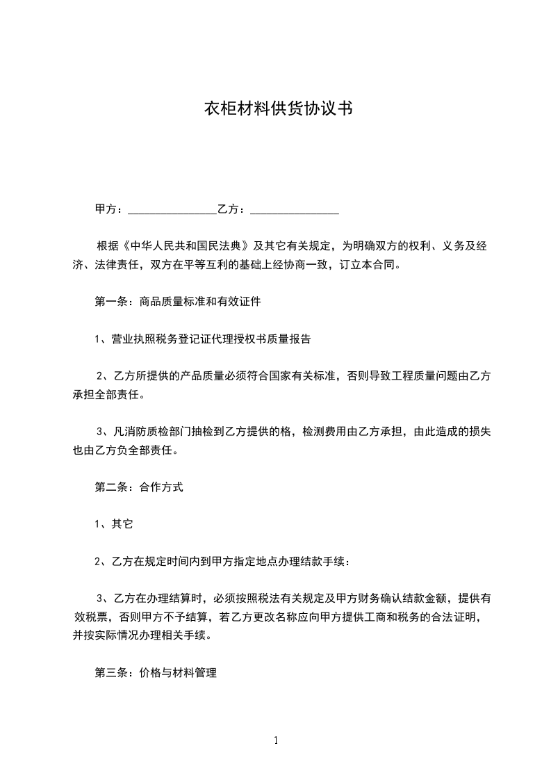 3、乙方在向甲方提供材料时,必须均为优等品。首先要提供样品。样品要符合甲方所需材料质量要求,不得以次充好,若发现质量问题甲方将从材料总金额中扣除50%作为惩罚。