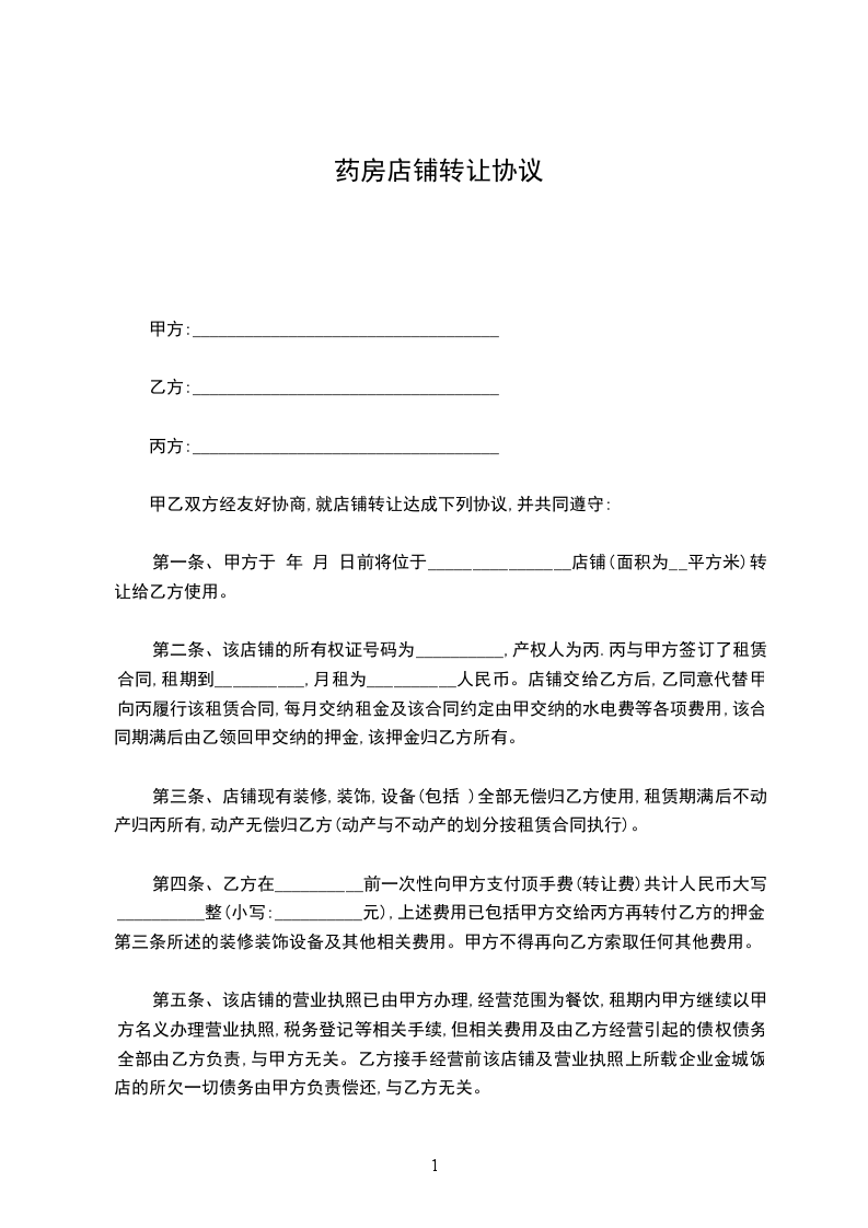 甲乙双方经友好协商,就店铺转让达成下列协议,并共同遵守: