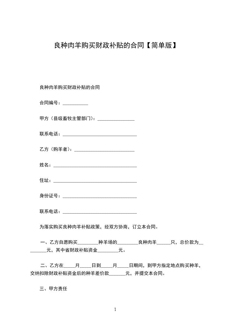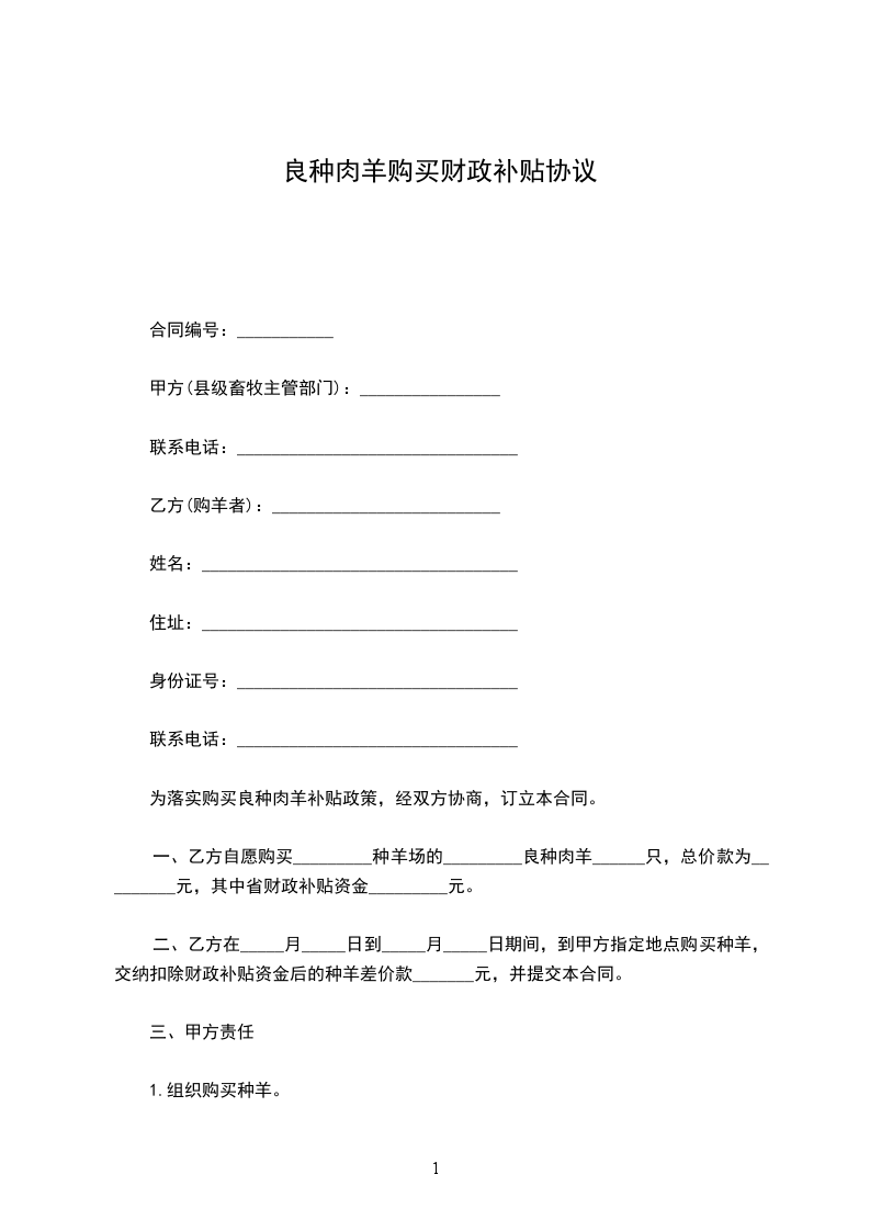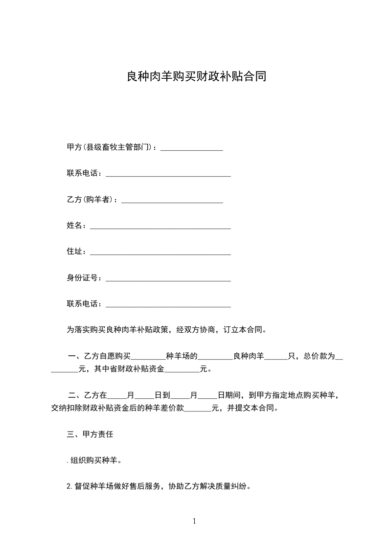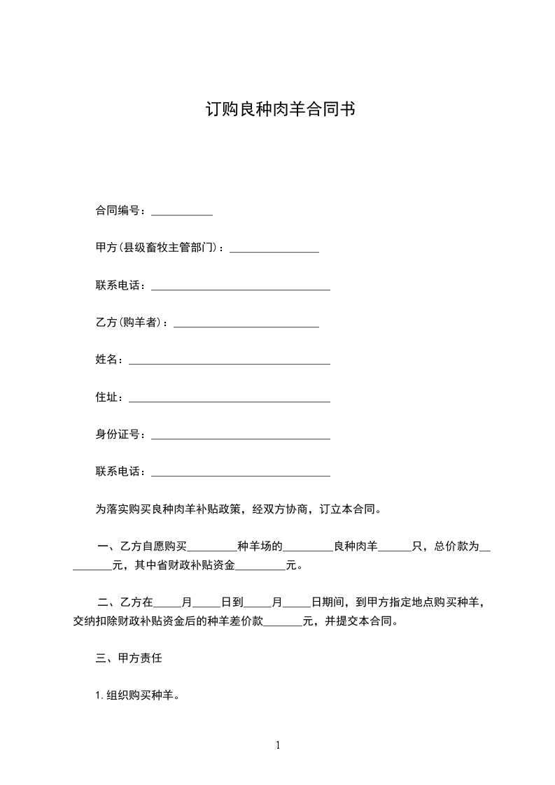 为落实购买良种肉羊补贴政策,经双方协商,订立本合同。