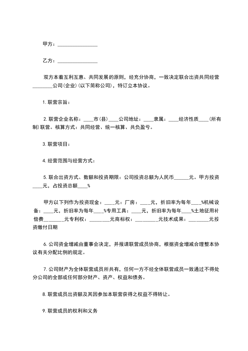 一、甲、乙、丙经协商,确定原座落于各种投入估价,人民币为上述投资原有甲方全额投资。