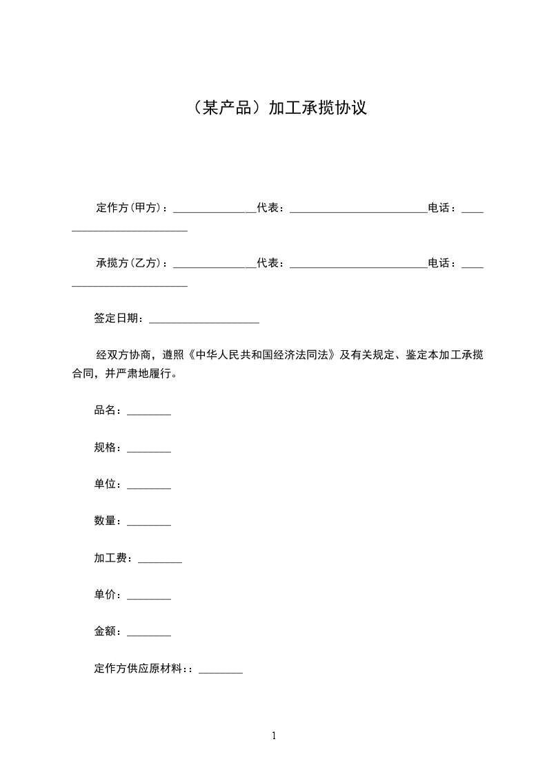 承揽方(乙方):_______________代表:_________________________电话:_________________________