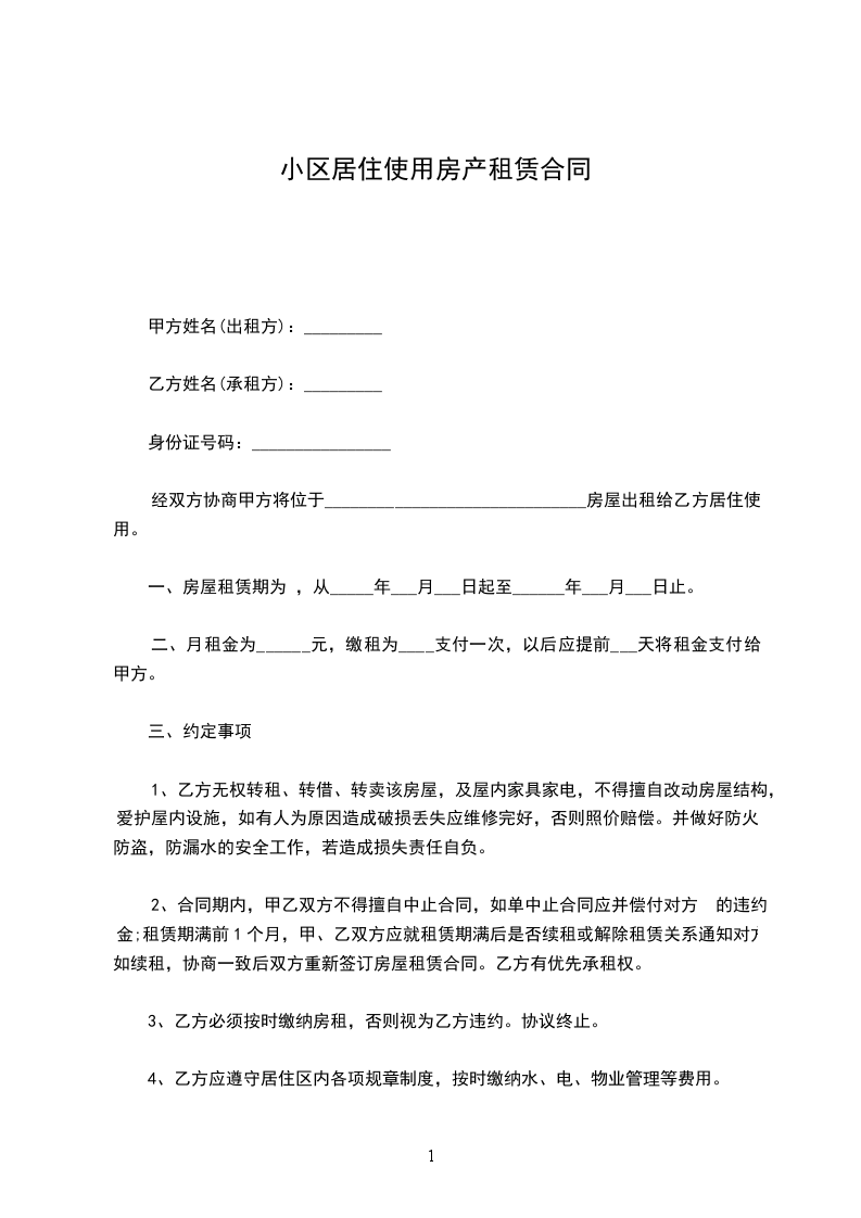 经双方协商甲方将位于______________________________房屋出租给乙方居住使用。