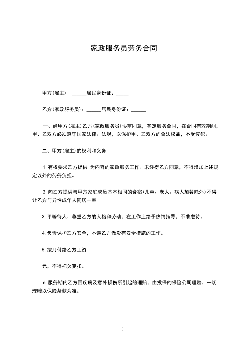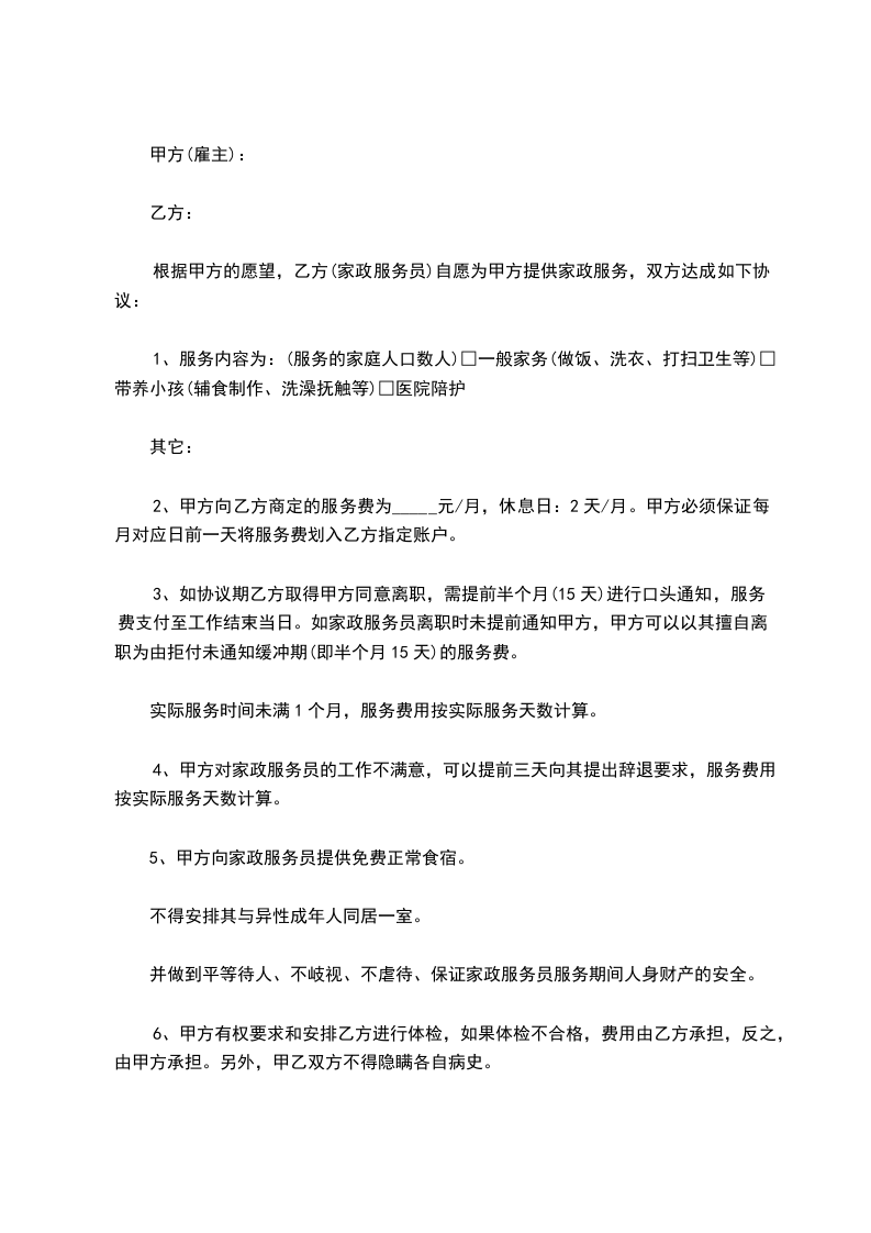 甲方(雇主):________________乙方(家政服务员):________________