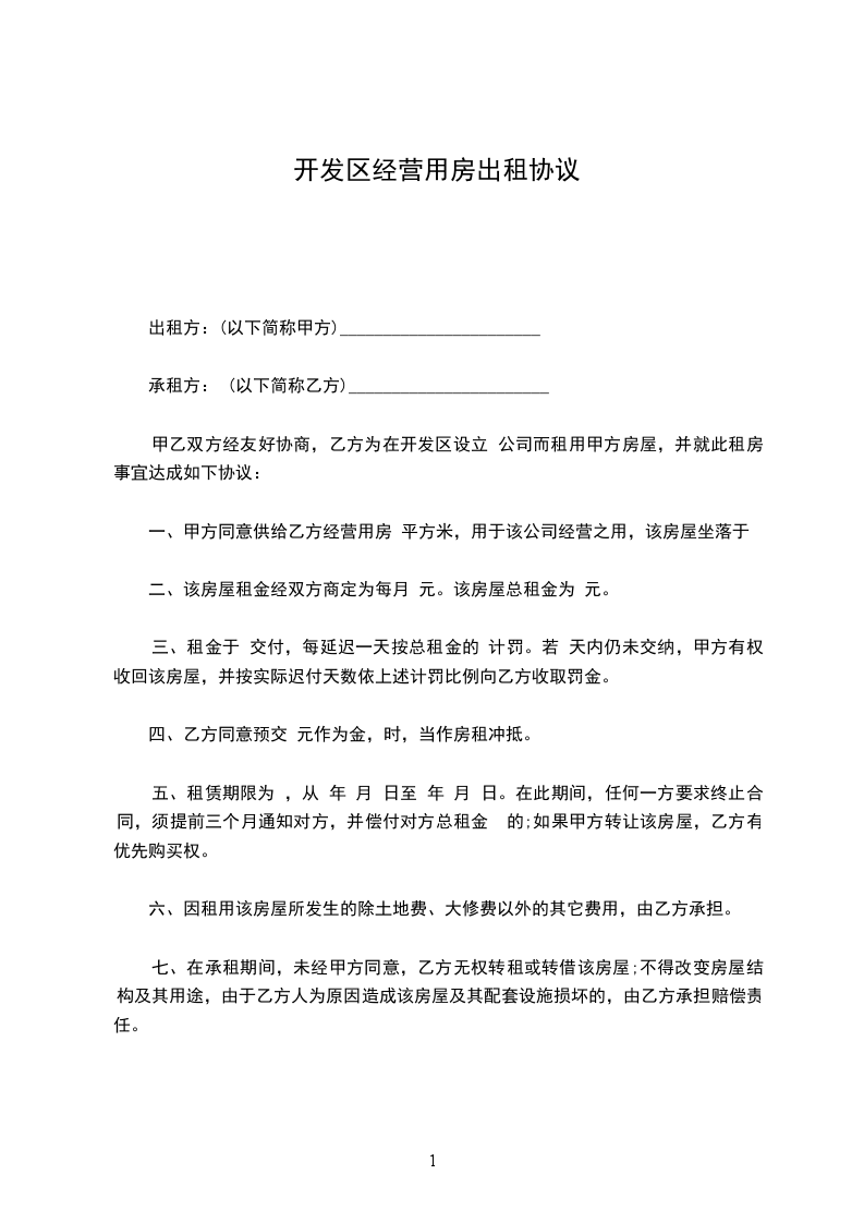 甲乙双方经友好协商,乙方为在开发区设立 公司而租用甲方房屋,并就此租房事宜达成如下协议: