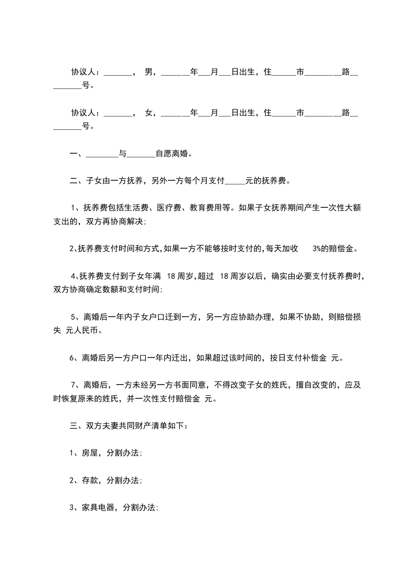 协议人:_______, 男,_______年___月___日出生,住______市_________路_________号。