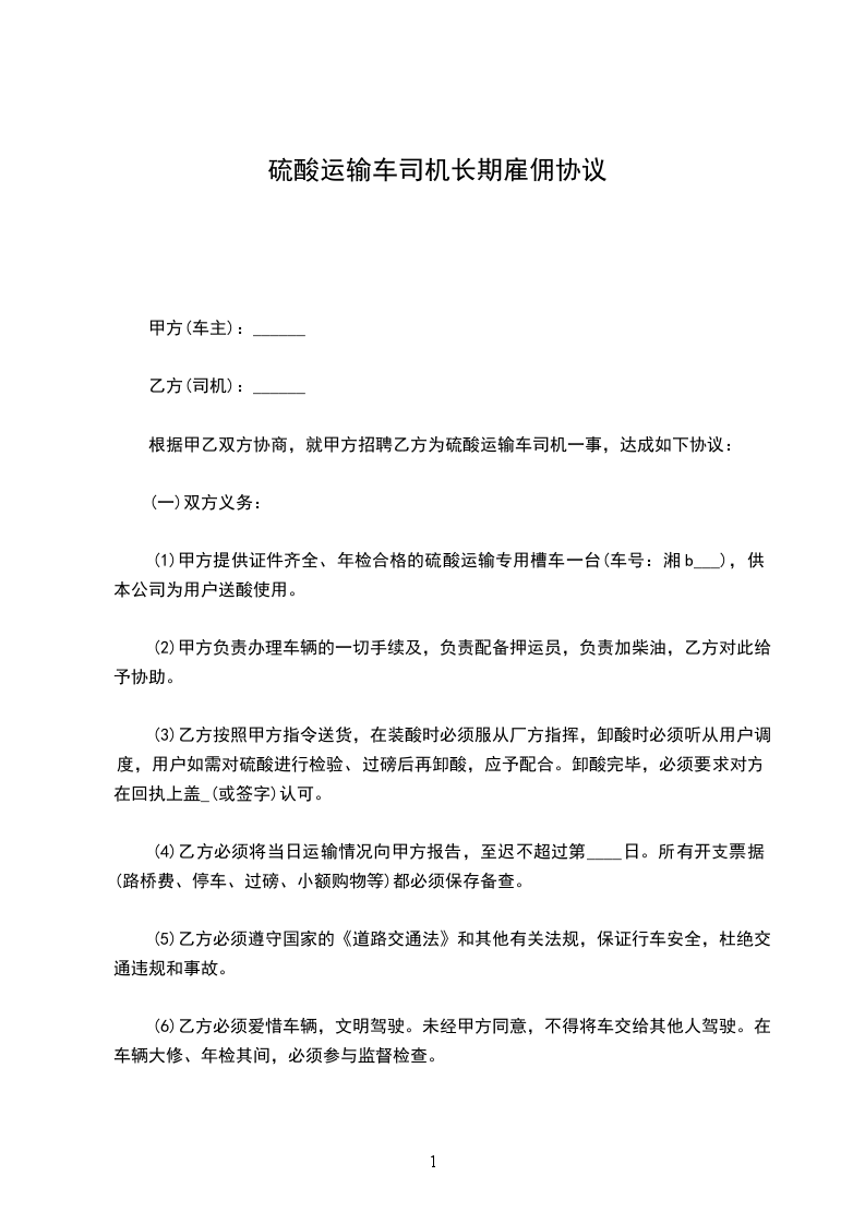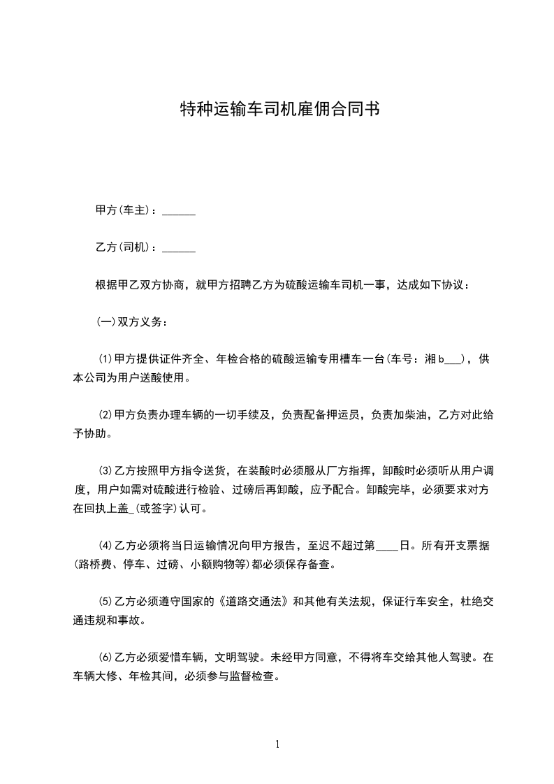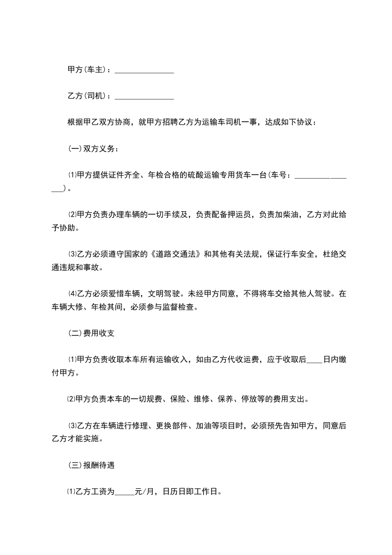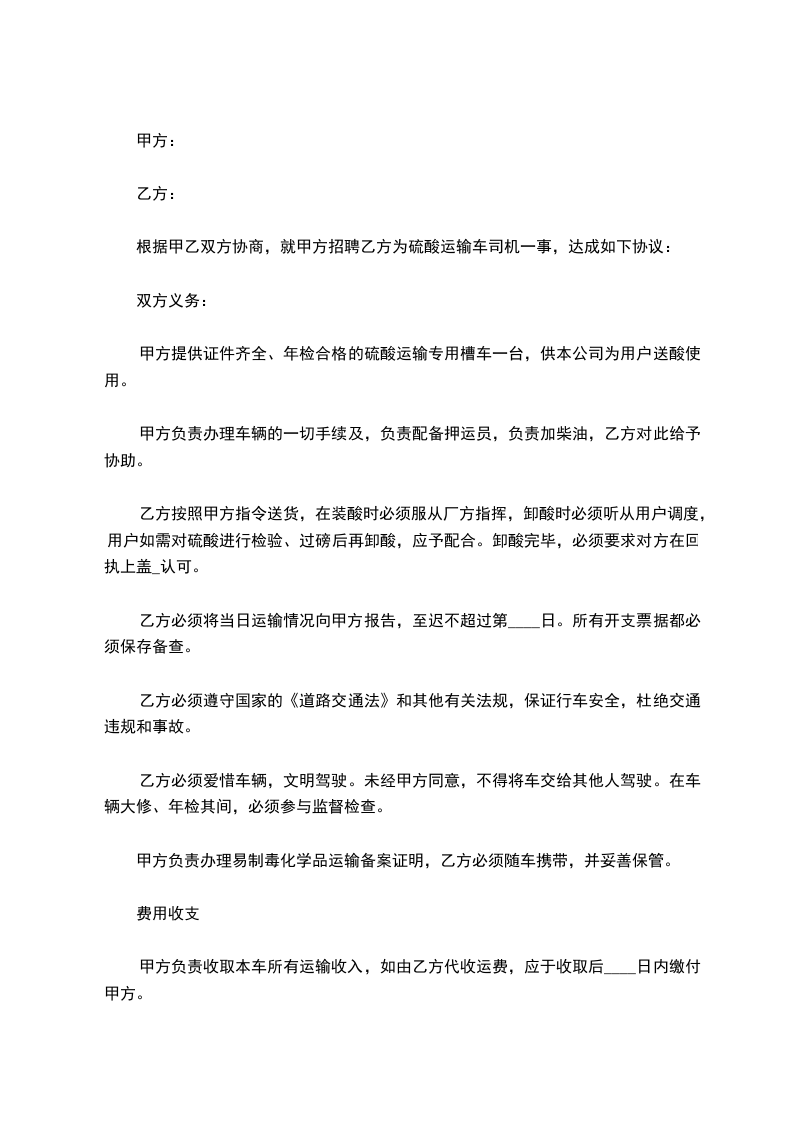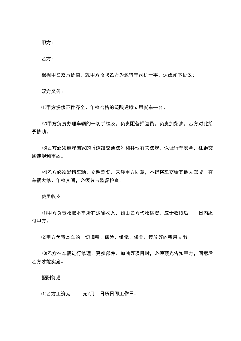 根据甲乙双方协商,就甲方招聘乙方为运输车司机一事,达成如下协议: