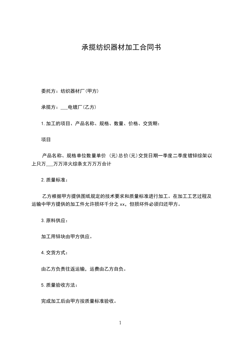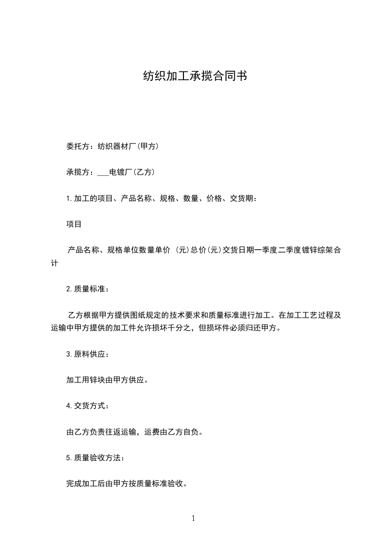 1.加工的项目、产品名称、规格________数量________价格、交货期: