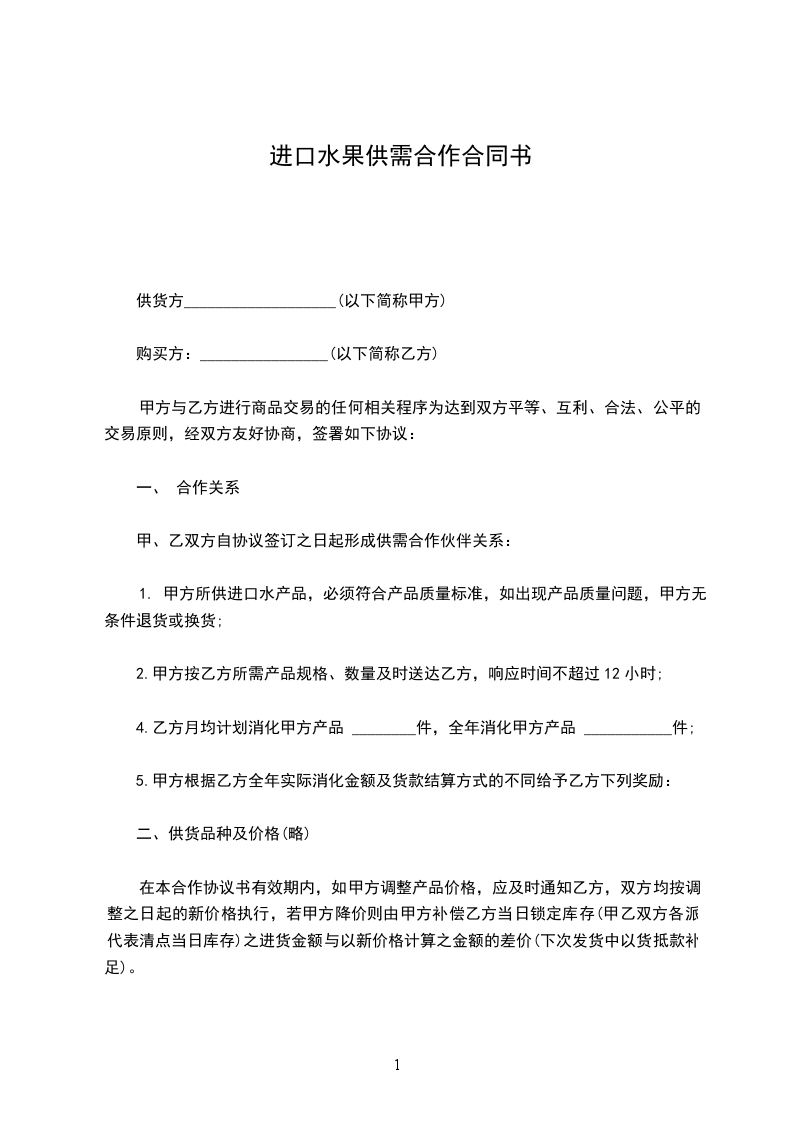 进口水果供需合作合同书