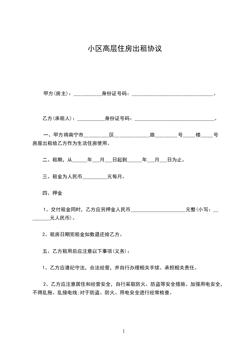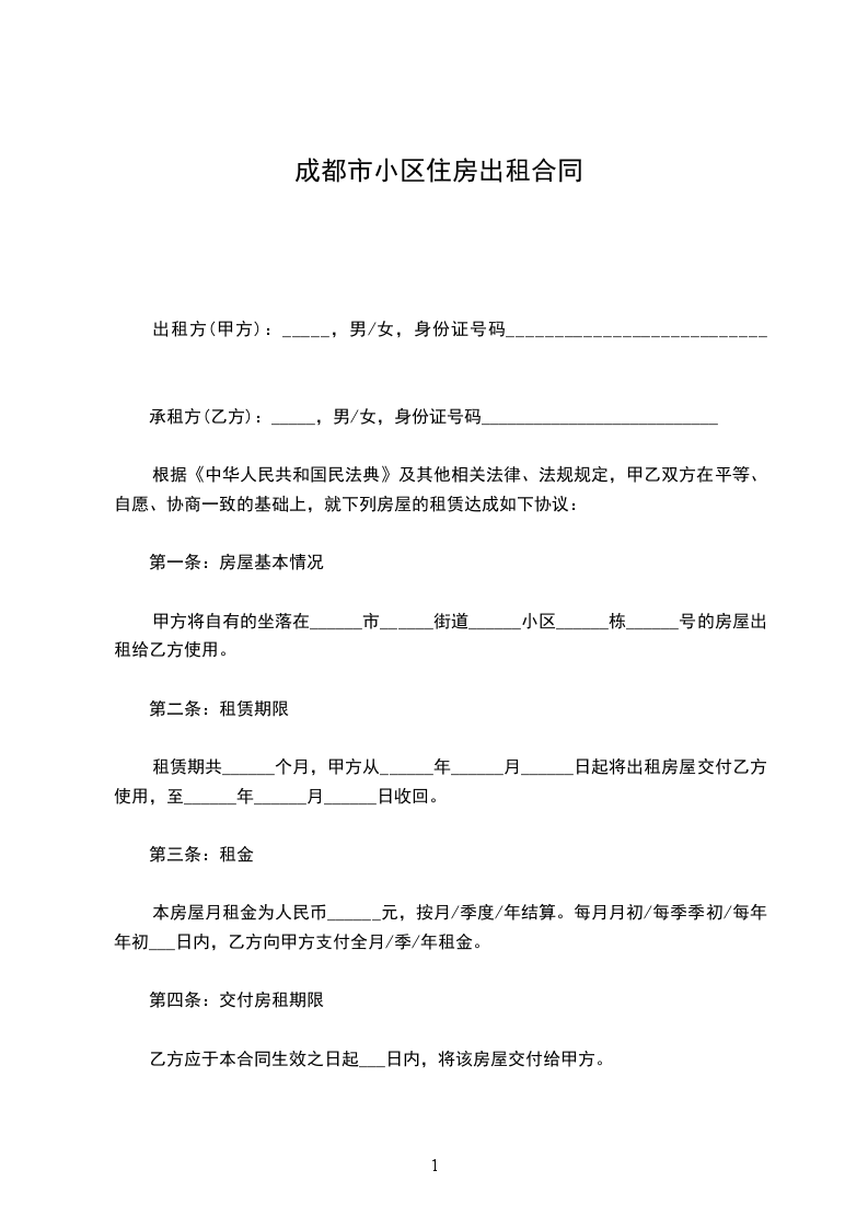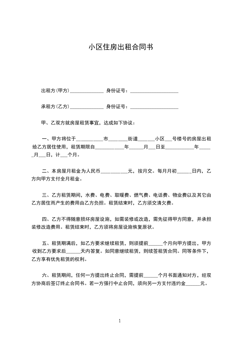 出租方(甲方)______________ 身份证号:____________________
