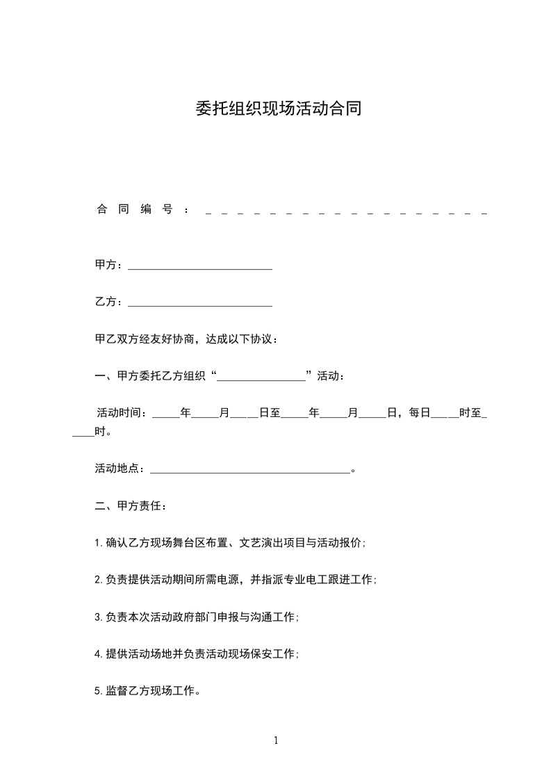 甲方委托乙方组织安排有关_____________ _______会议(活动)。乙方接受委托。为明确双方的权利义务,根据《中华人民共和国民法典》及其他有关法律法规,达成如下协议: