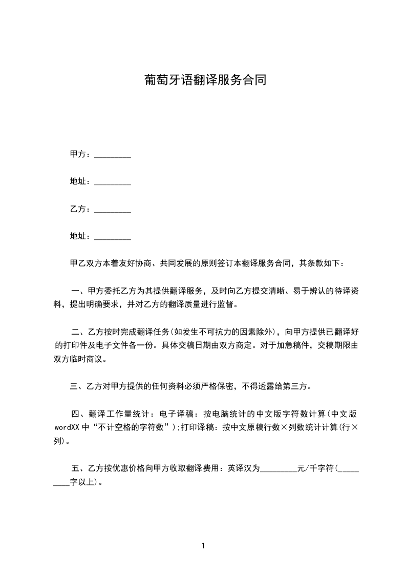 甲乙双方本着友好协商、共同发展的原则签订本翻译服务合同,其条款如下: