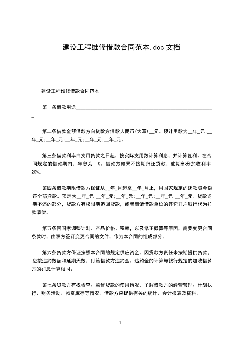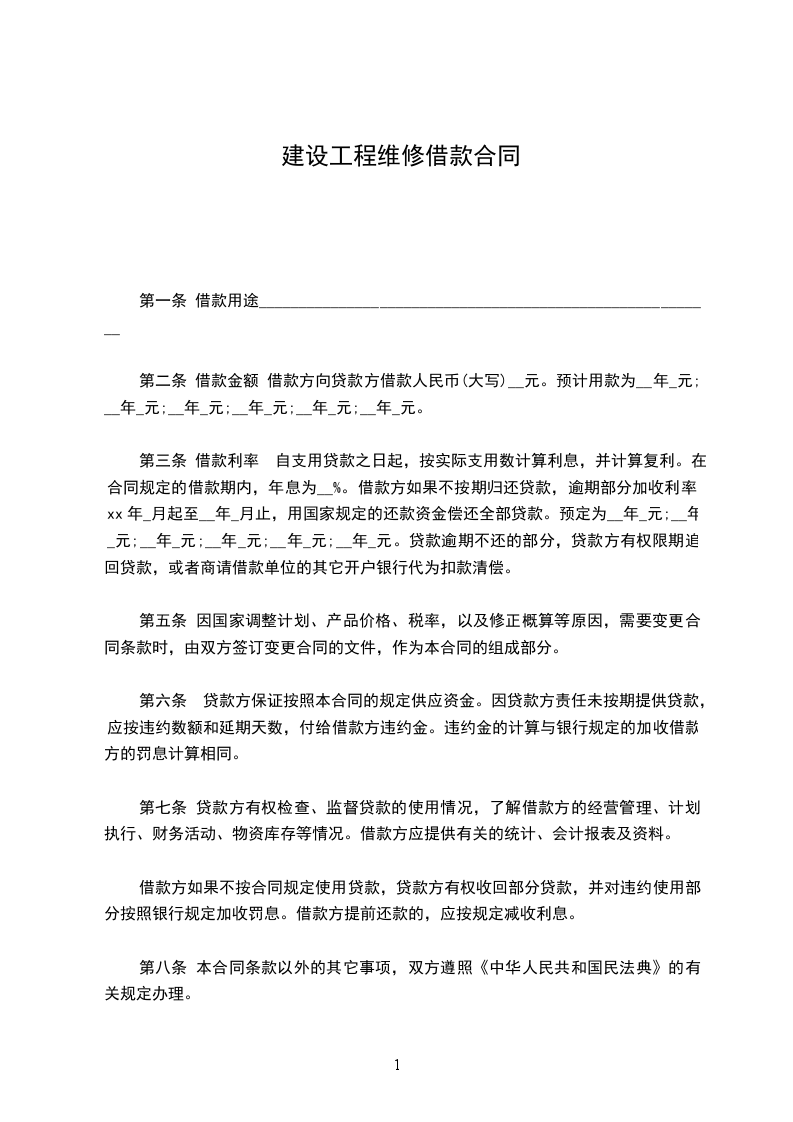 第二条 借款金额 借款方向贷款方借款人民币(大写)__元。预计用款为__年_元;__年_元;__年_元;__年_元;__年_元;__年_元。