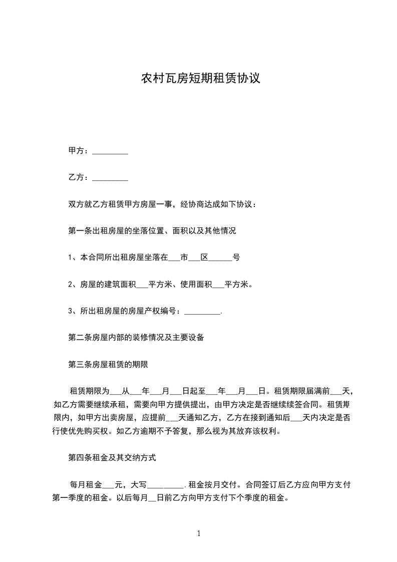1、本合同所出租房屋坐落在___市___区______号