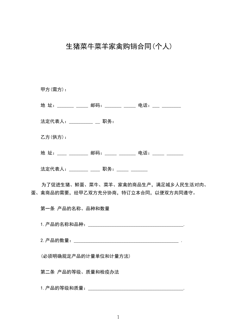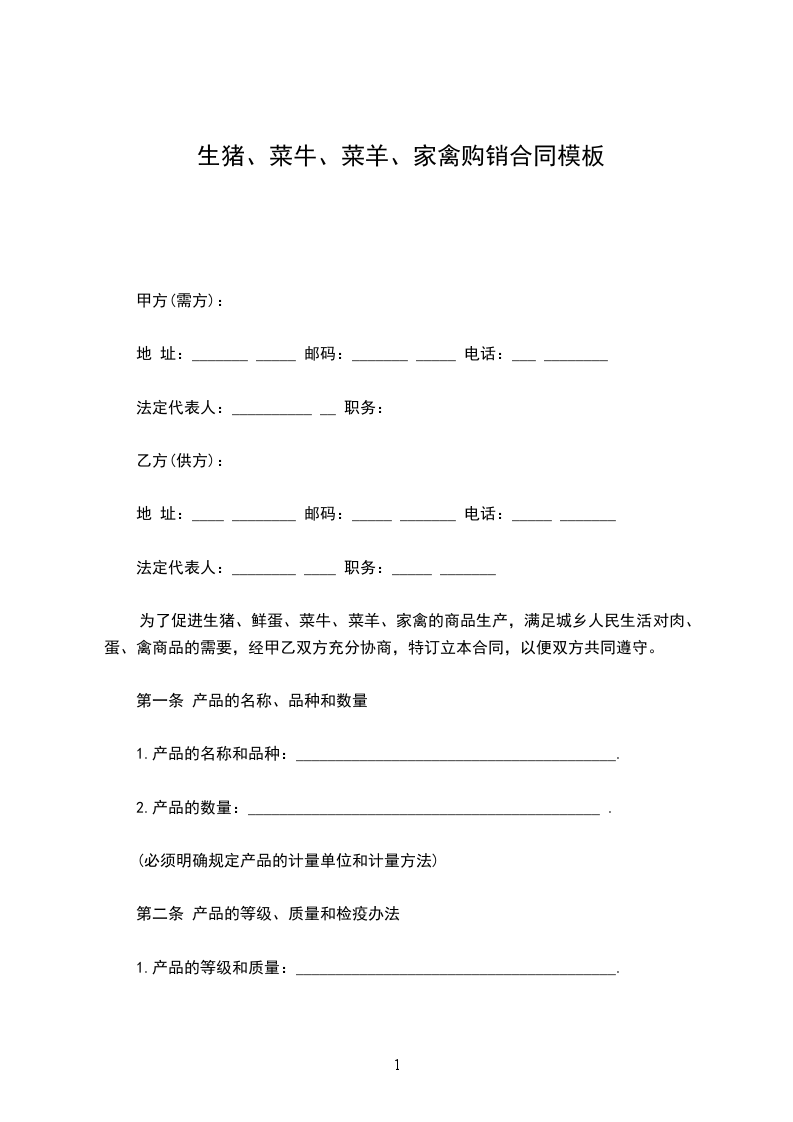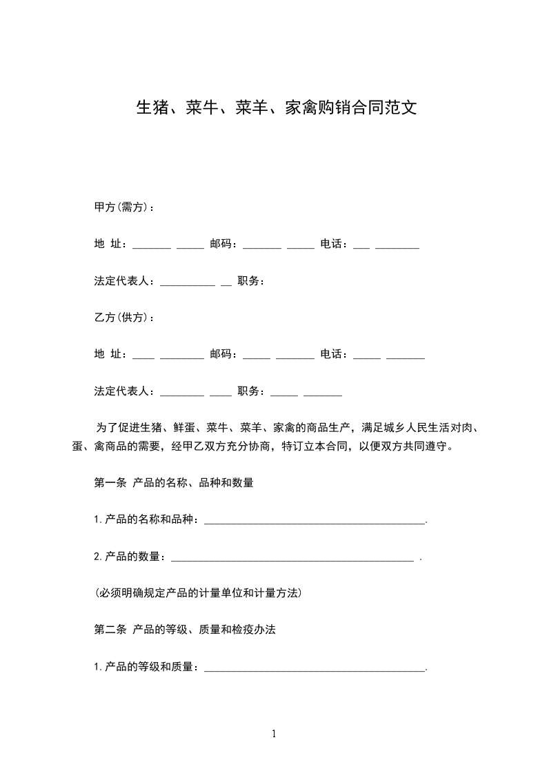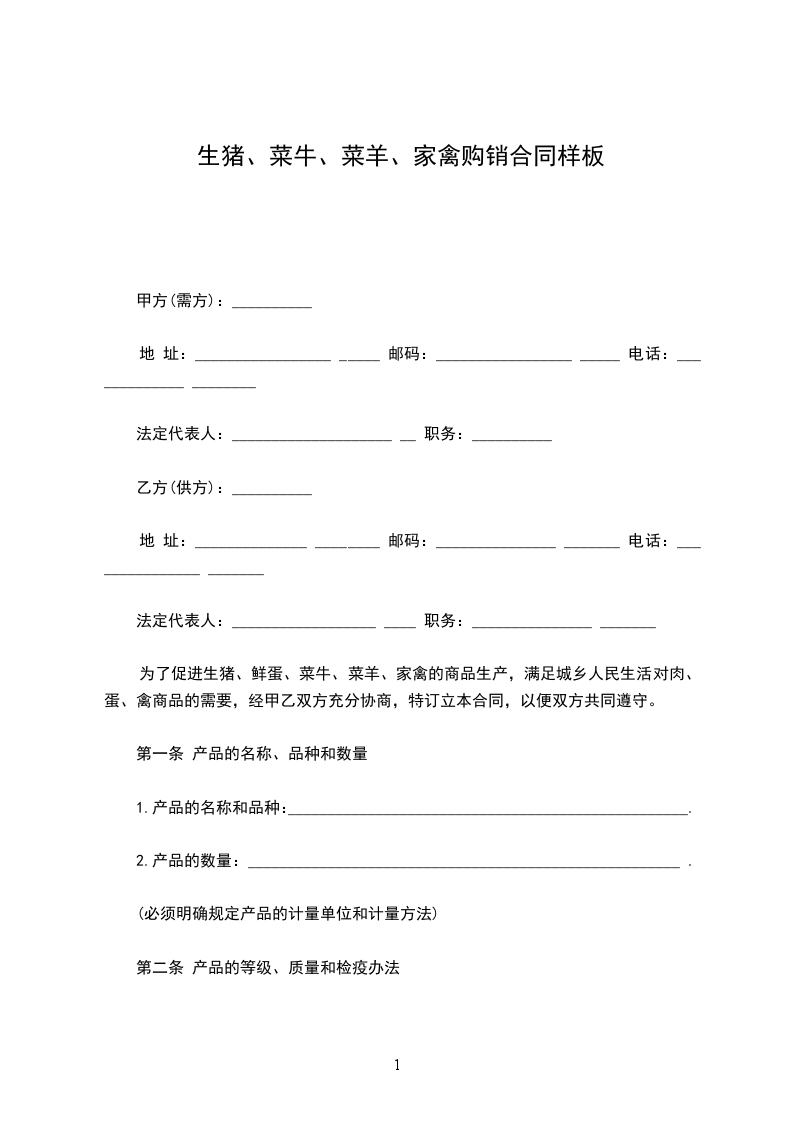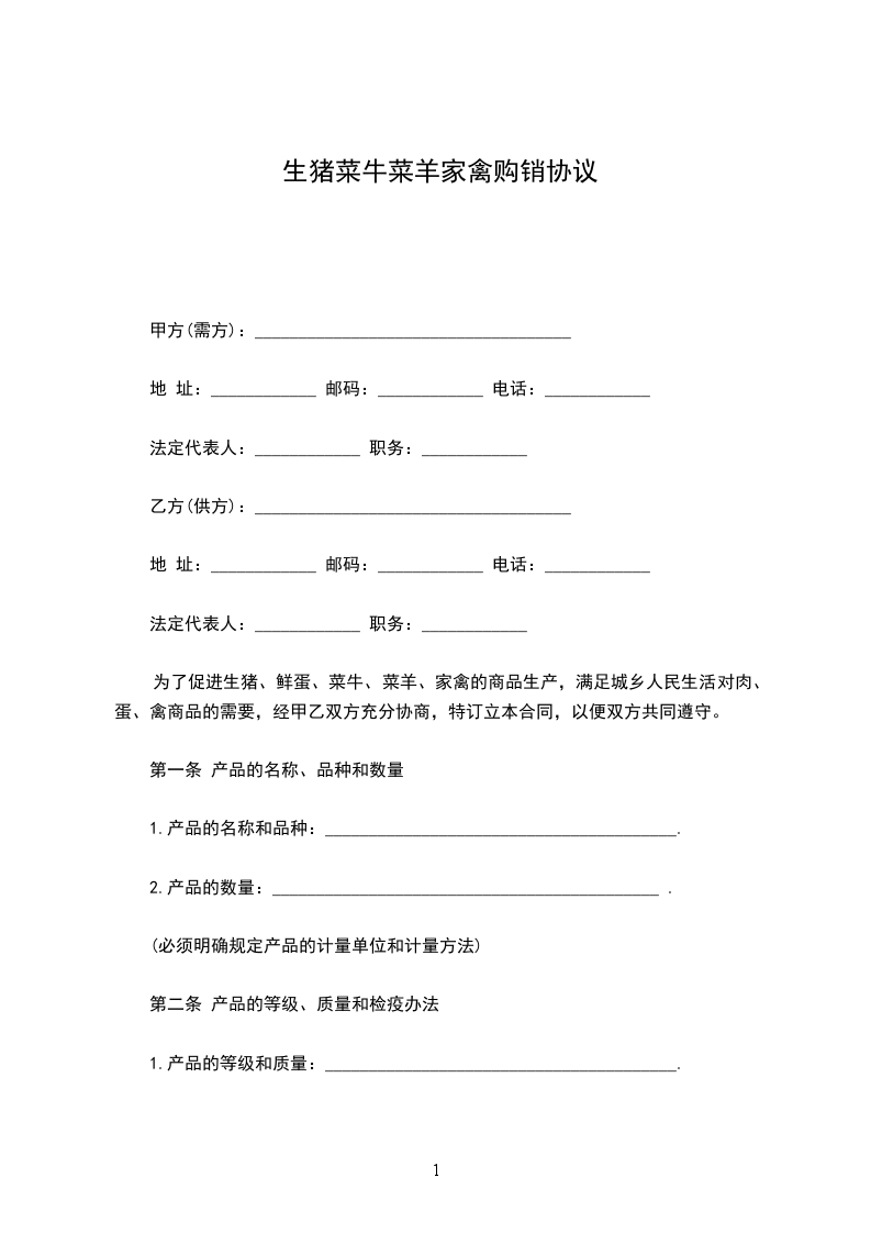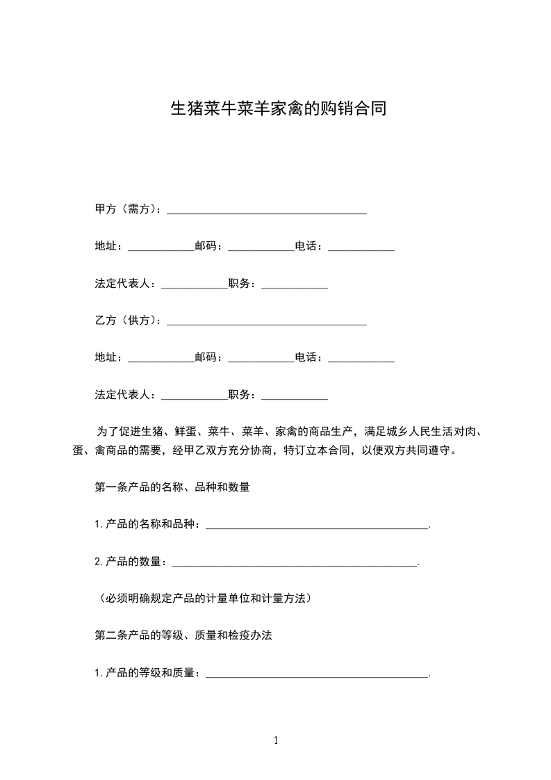 为了促进生猪、鲜蛋、菜牛、菜羊、家禽的商品生产,满足城乡人民生活对肉、蛋、禽商品的需要,经甲乙双方充分协商,特订立本合同,以便双方共同遵守。
