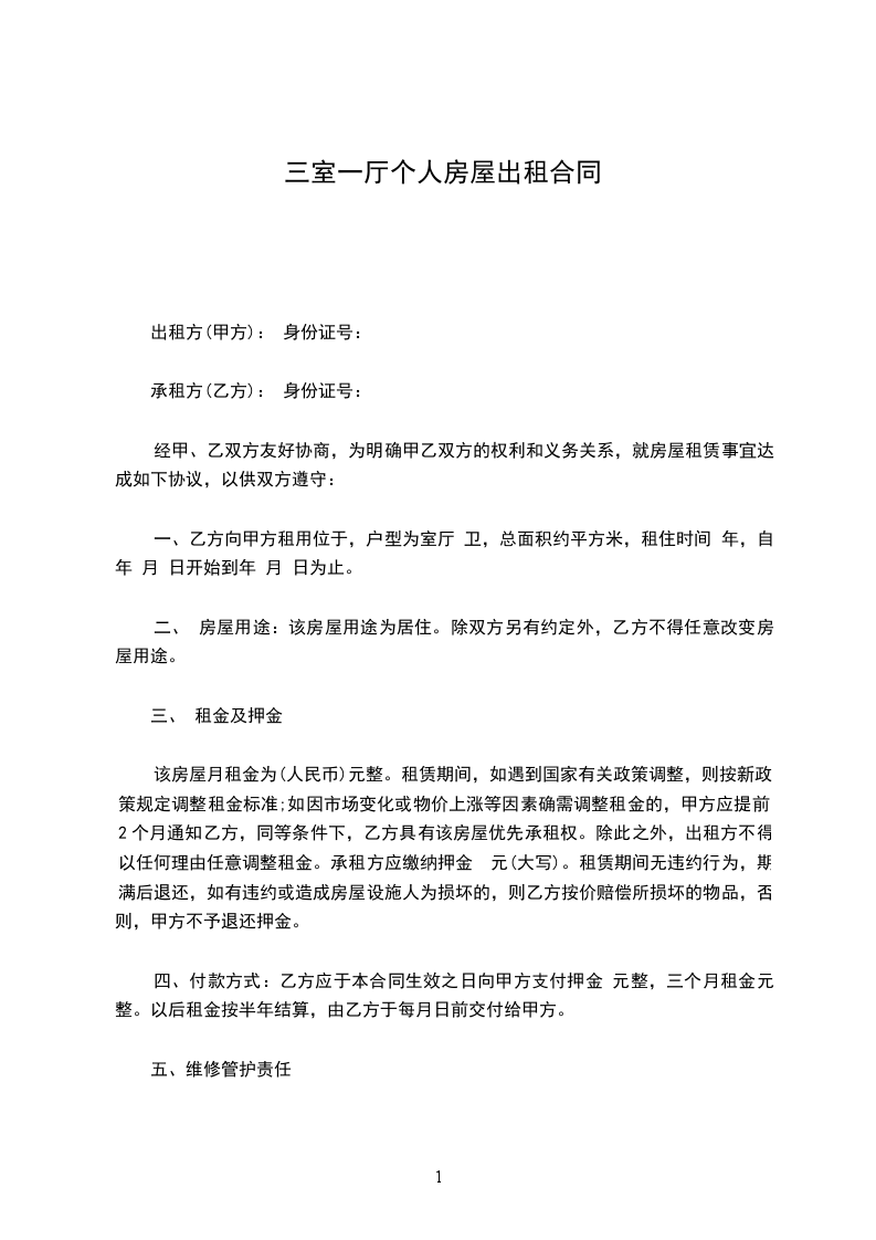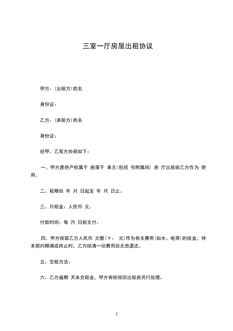一、甲方愿把产权属于 座落于 单元(包括 号附属间) 房 厅出租给乙方作为 使用。