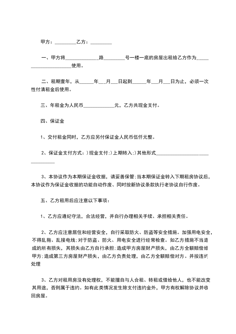 十四、甲方收取乙方人民币(大写) 作为押金,租赁期满后经甲方验收房屋无损坏,所有费用结算清楚,甲方应把押金如数退还乙方,但乙方不能以押金代房租。