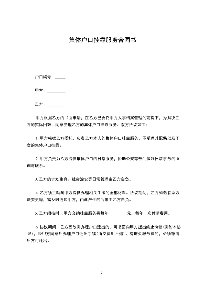 1.甲方根据乙方委托,负责乙方本人的集体户口挂靠服务。不受理其配偶以及子女的集体户口挂靠。