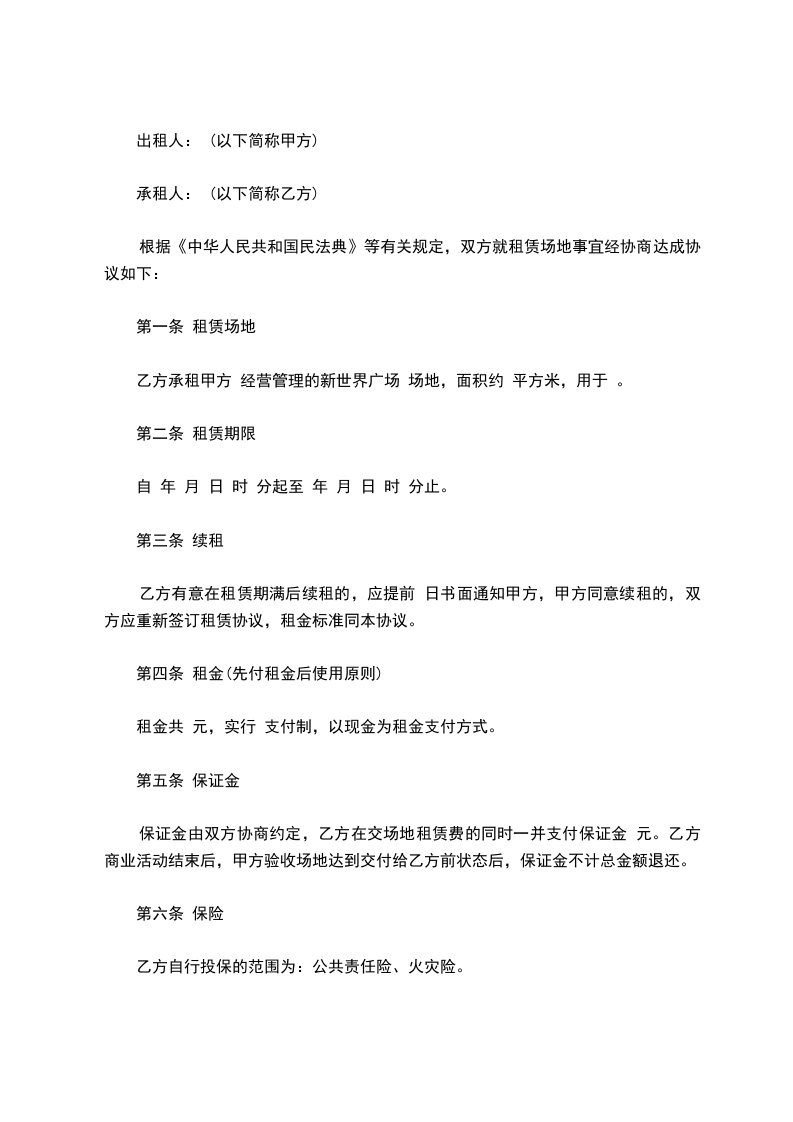 第一条 租赁场地