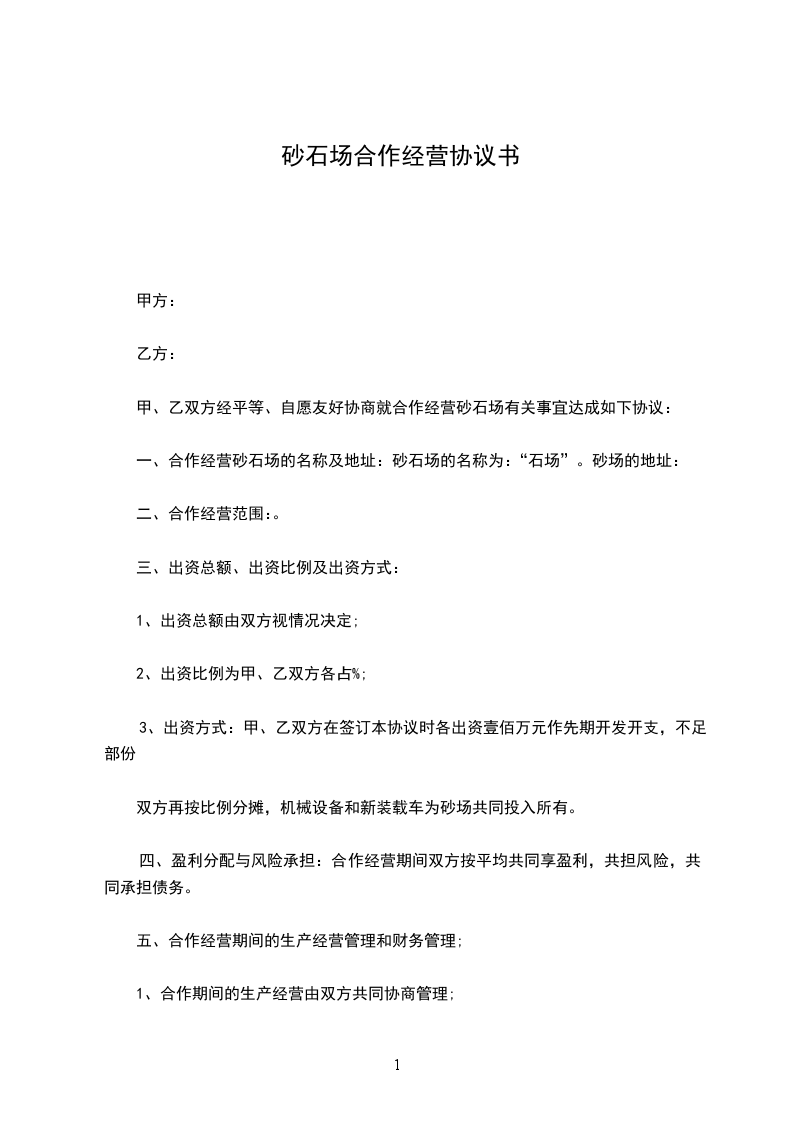 甲、乙双方经平等、自愿友好协商就合作经营砂石场有关事宜达成如下协议: