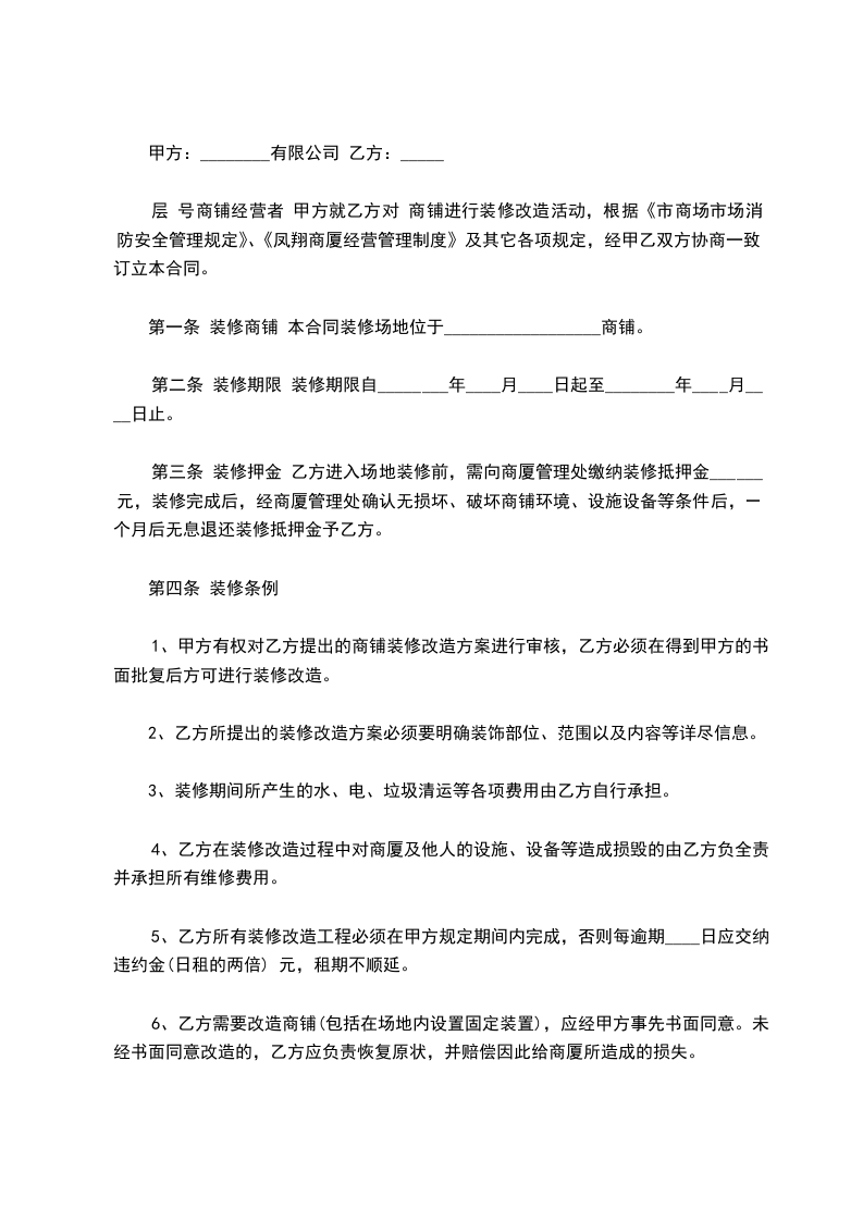 2、自协议签订之日起,乙方需向甲方交纳装修保证金人民币_____________元整。