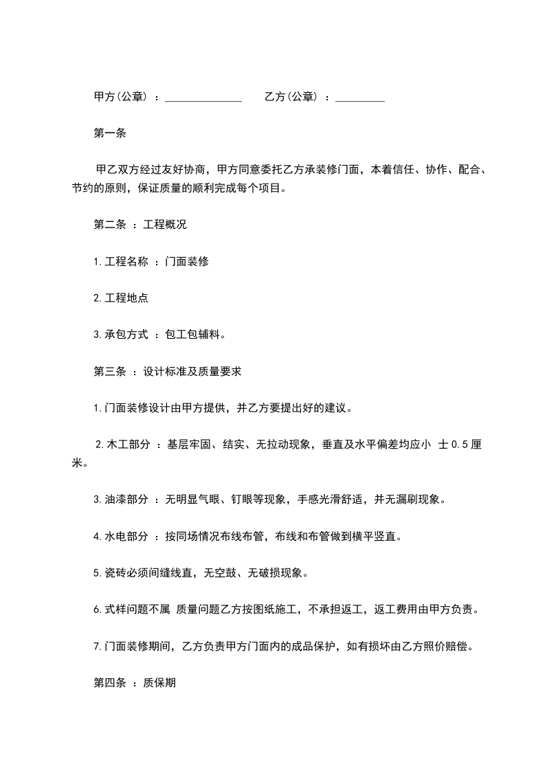 1、自协议签定之日,甲方负责为乙方提供店面整体设计及装修。装修内容包括: