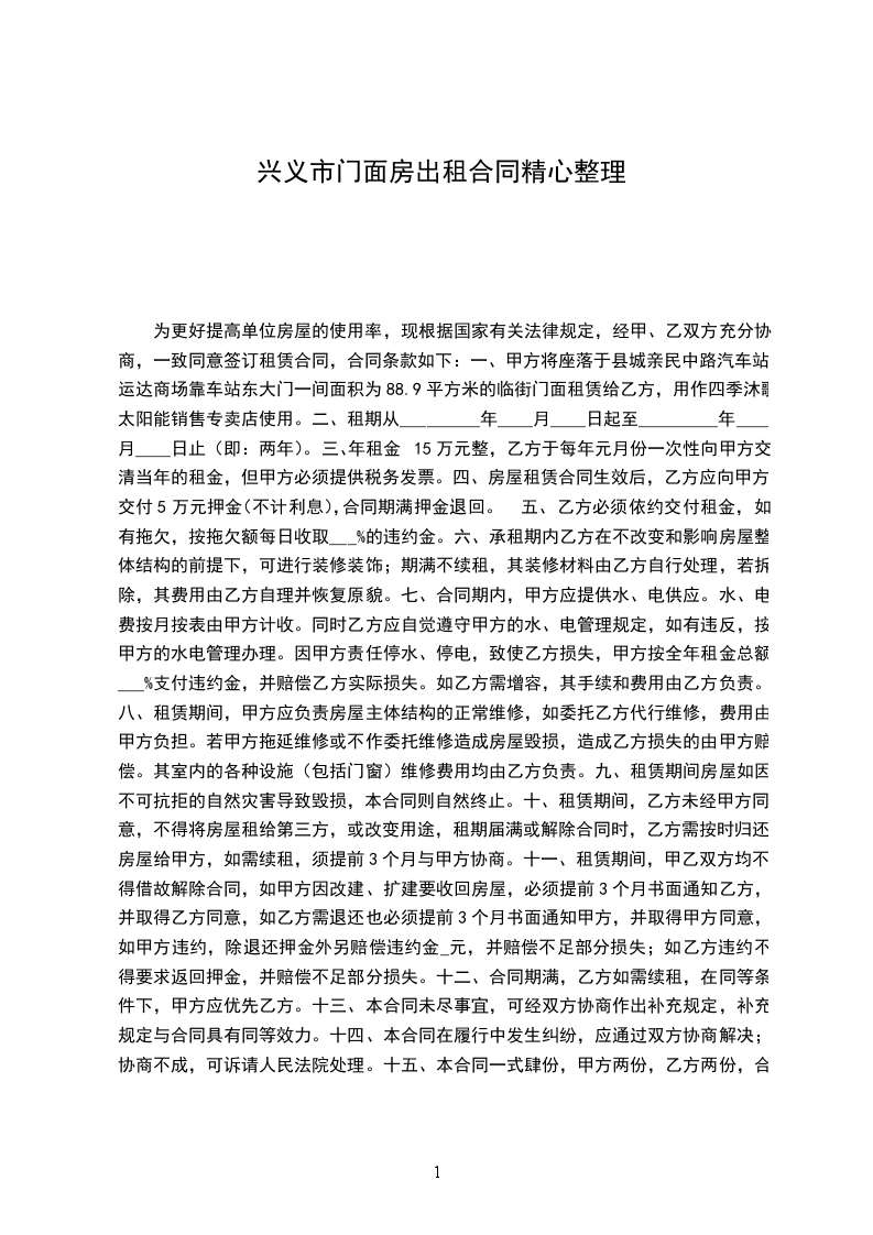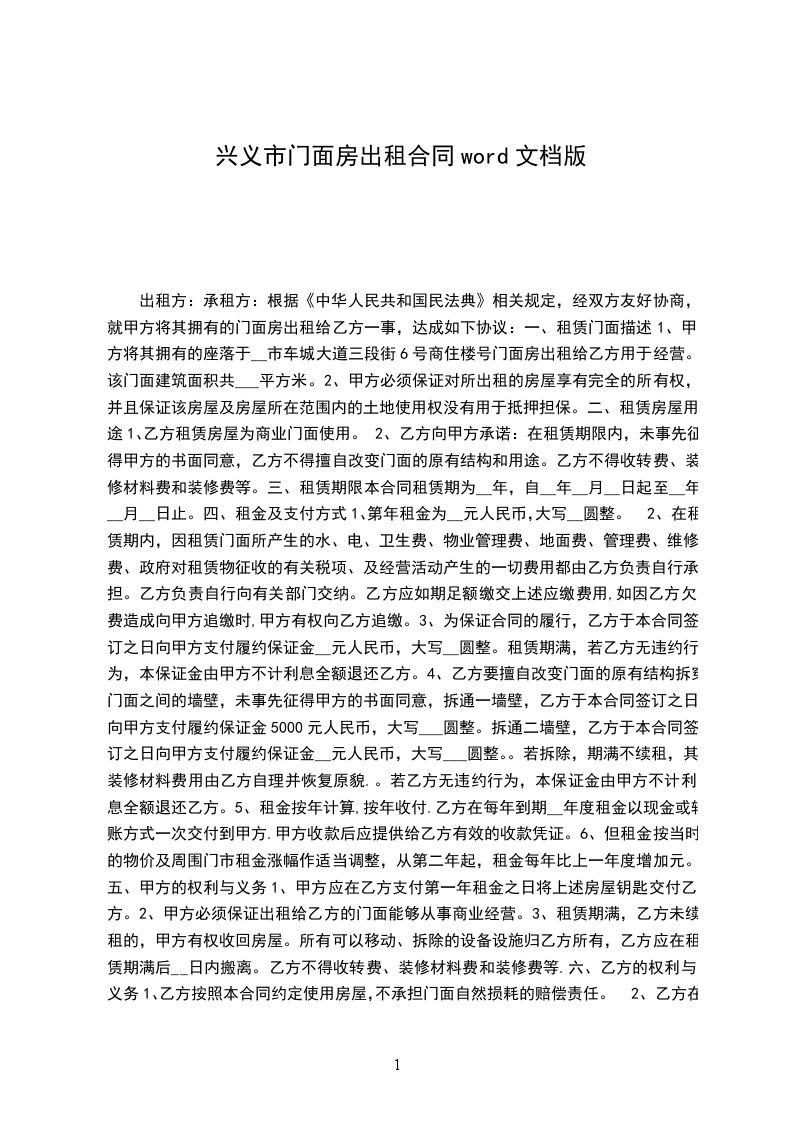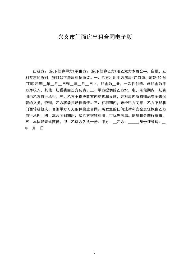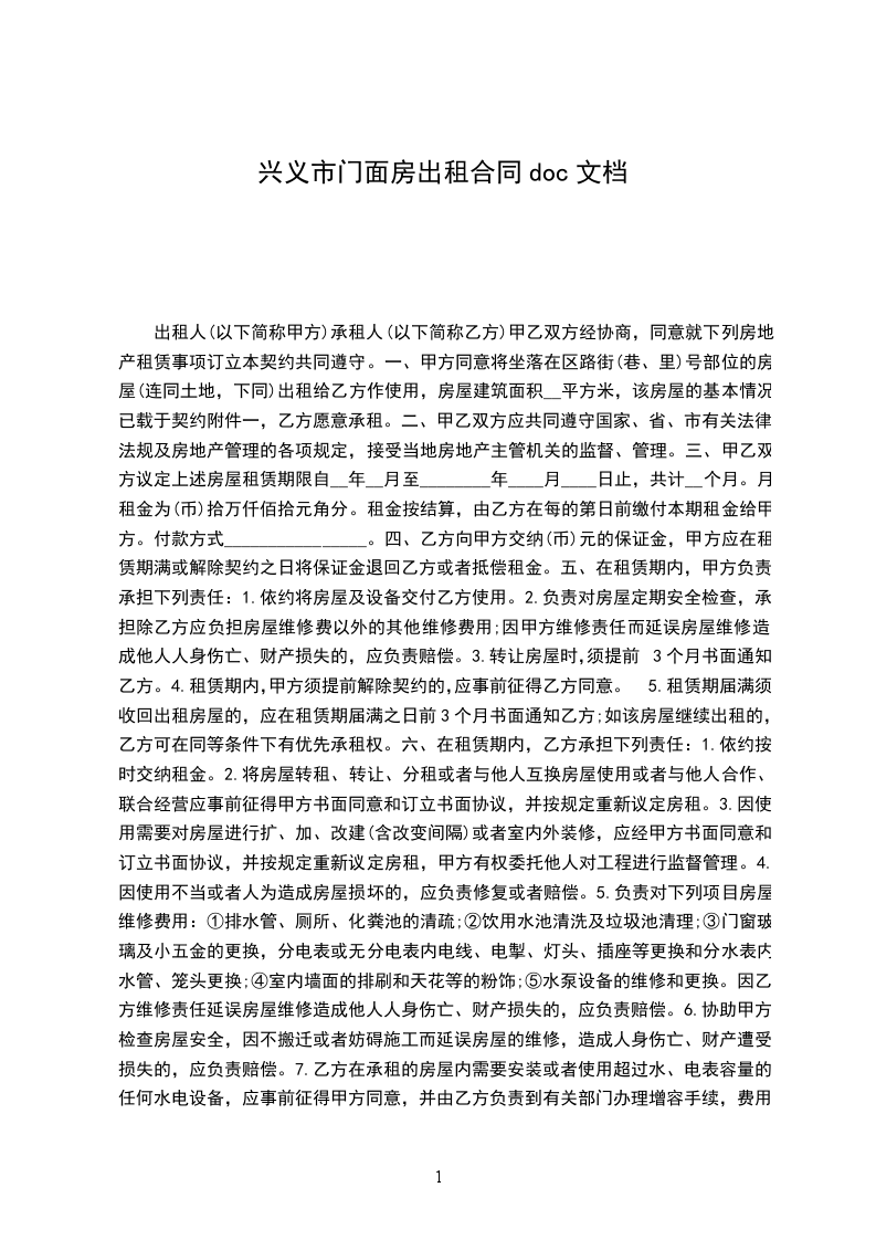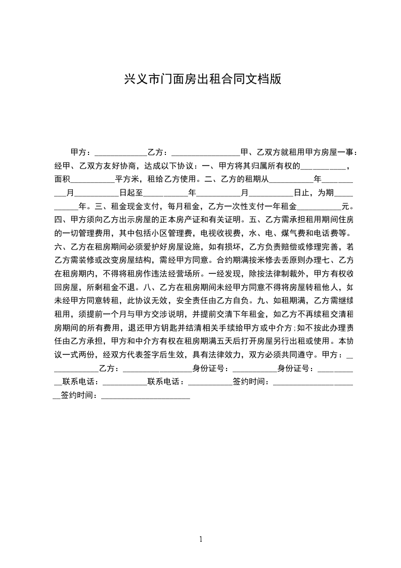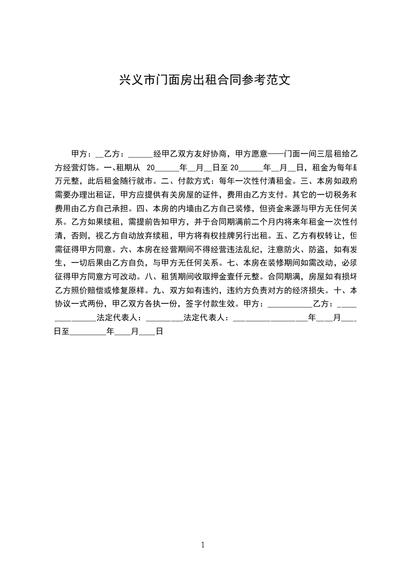一、甲方将位于:贵州省兴义市神奇西咱46号门面出租给乙方,作为经营烟花爆竹使用,面积为40平方米,租金每年为捌仟元整(¥:8000。00元),缴纳租金为每年一交,租期为________年_____月_____日至________年_____月_____日止。