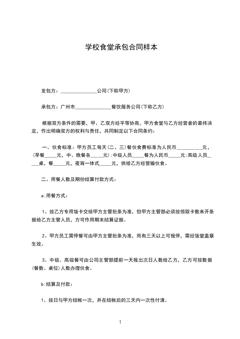 一、伙食标准:甲方员工每天(二、三)餐伙食费标准为人民币__________元,(早餐_____元,中、晚餐各_____元);中级人员_____餐为人民币_____元;高级人员_____桌,餐_____元,夜宵一体式_____元,供给乙方经营输伙食。