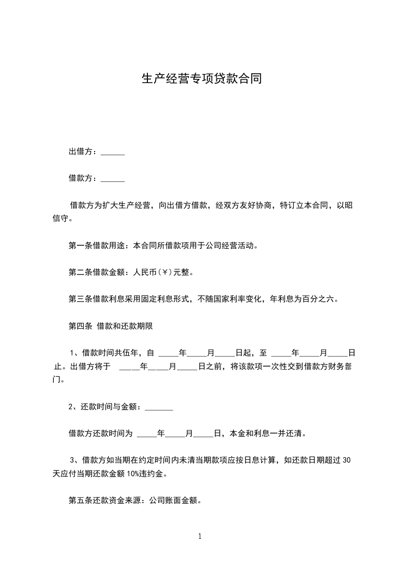 一、甲方向乙方提供贷款__________________元,并委托____________(开户行)与乙方签订借款合同,具体内容按借贷合同执行。