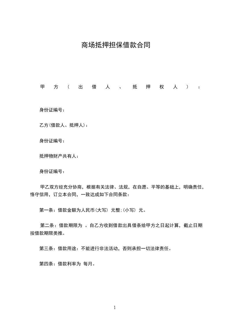 第一条:借款金额为人民币(大写) 元整;(小写) 元。