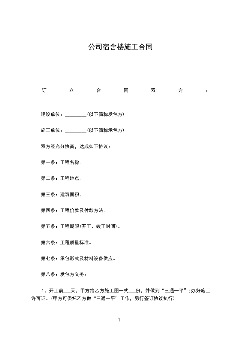 1、开工前___天,甲方给乙方施工图一式___份,并做到“三通一平”;办好施工许可证。(甲方可委托乙方做“三通一平”工作,另行签订协议执行)