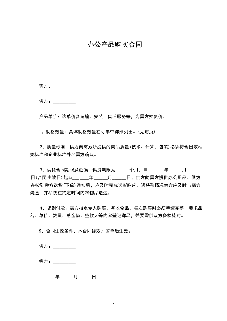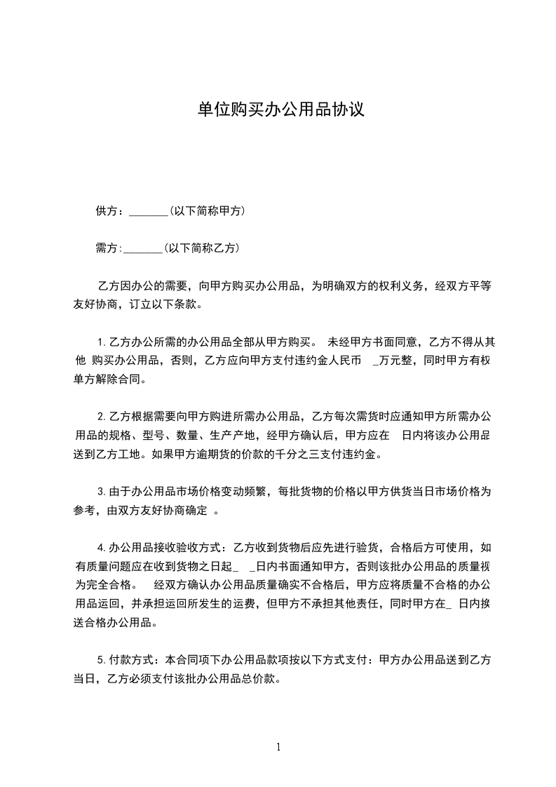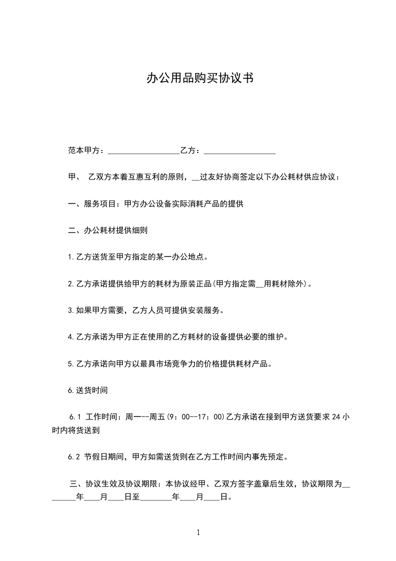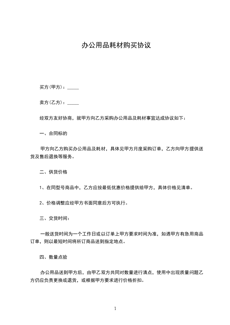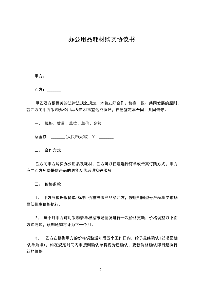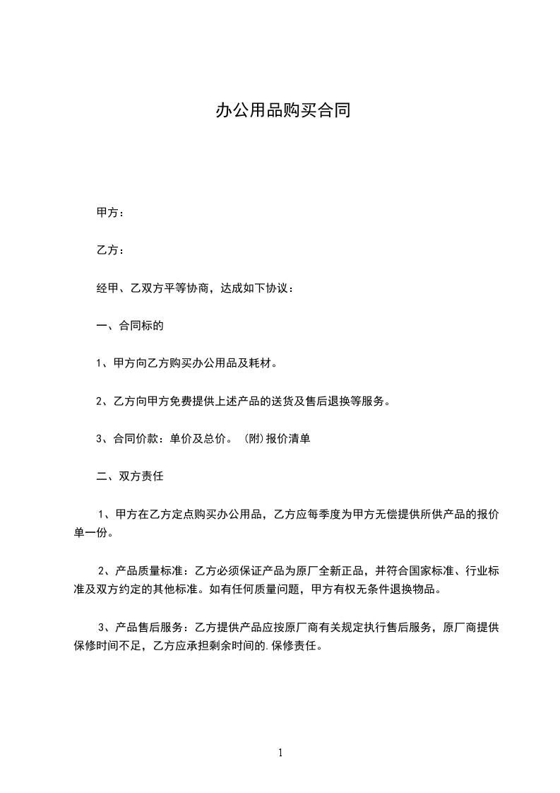 1、甲方在乙方定点购买办公用品,乙方应每季度为甲方无偿提供所供产品的报价单一份。