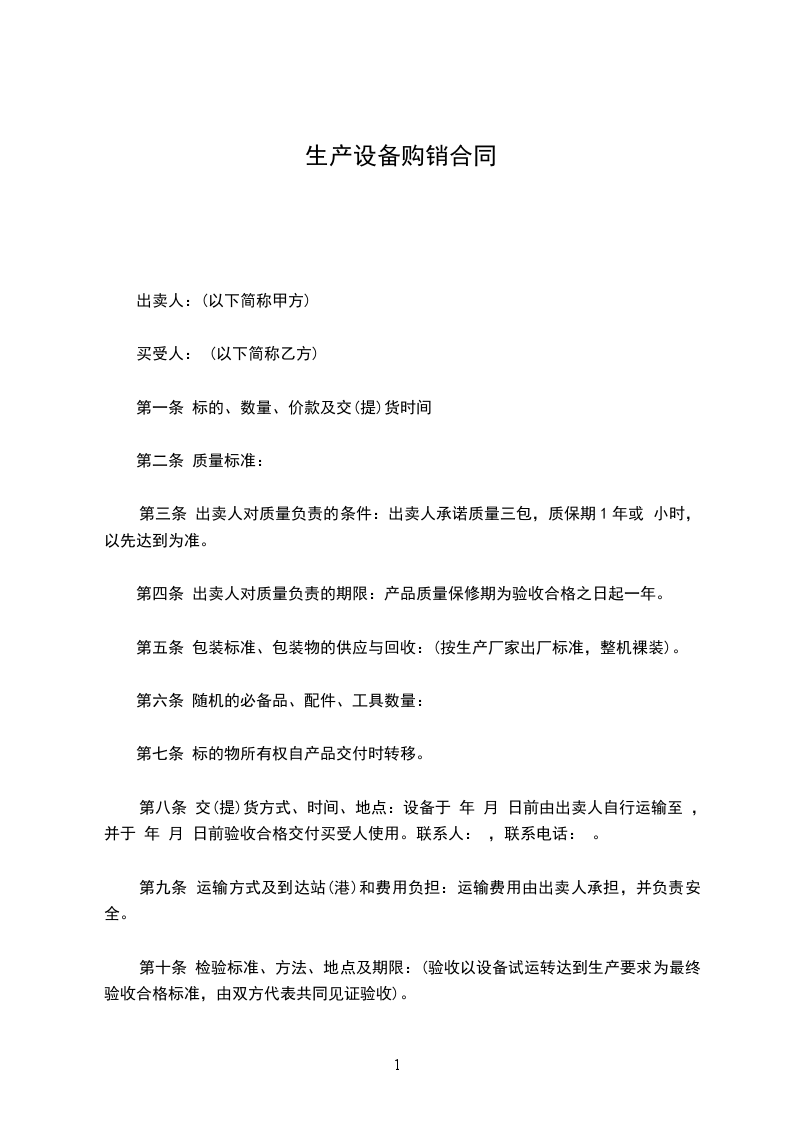 第八条 交(提)货方式、时间、地点:设备于 年 月 日前由出卖人自行运输至 ,并于 年 月 日前验收合格交付买受人使用。联系人: ,联系电话: 。
