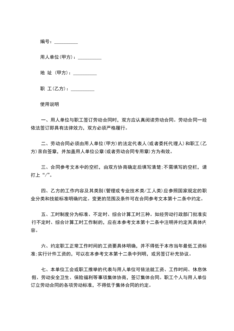 三、合同参考文本中的空栏,由双方协商确定后填写清楚;不需填写的空栏,请打上“/”。