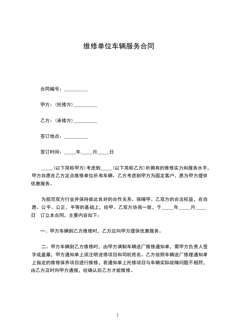 9、对乙方的车辆,甲方提供节假日、夜间加班特别修车服务。