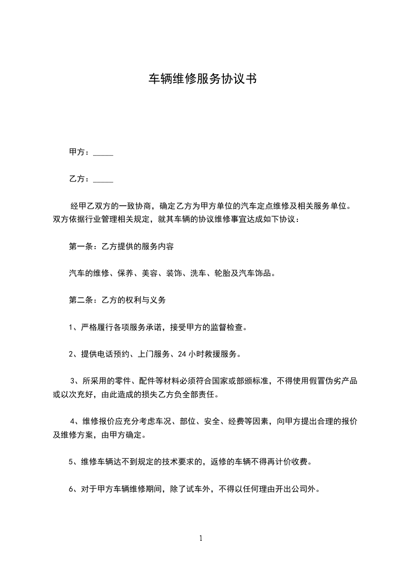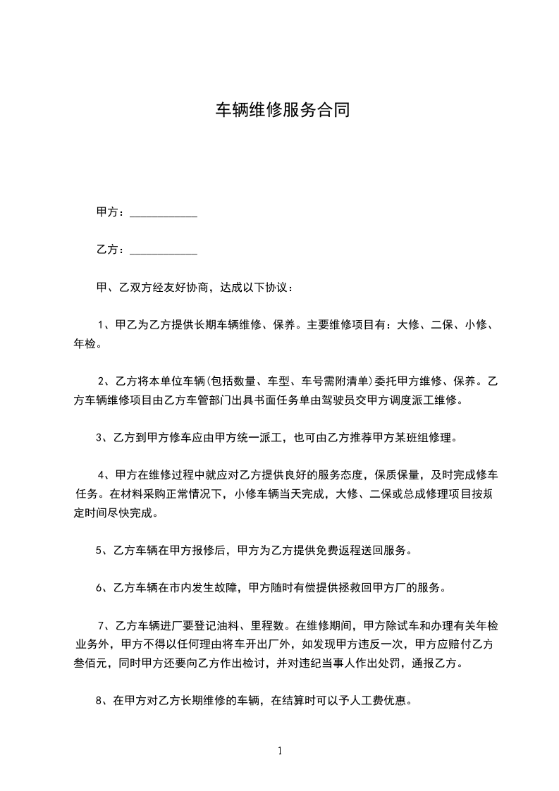1、甲乙为乙方提供长期车辆维修、保养。主要维修项目有:大修、二保、小修、年检。