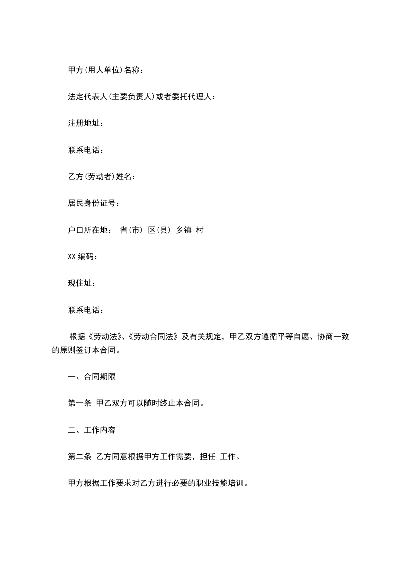 第二条 乙方同意根据甲方工作需要,担任 工作。
