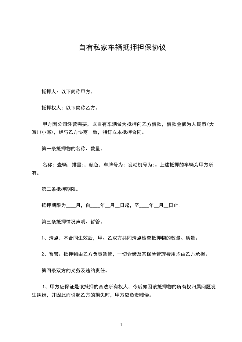 甲方因公司经营需要,以自有车辆做为抵押向乙方借款,借款金额为人民币(大写)(小写),经与乙方协商一致,特订立本抵押合同。