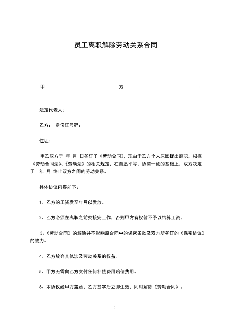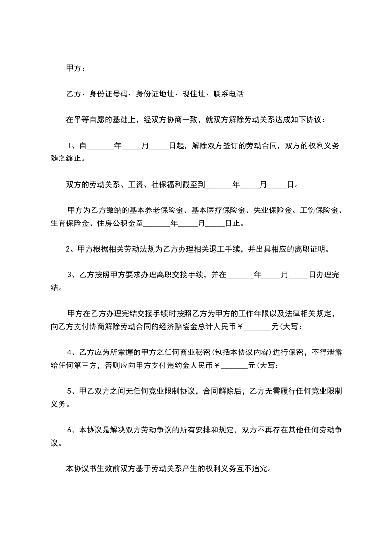 6. 双方确认,本协议构成甲方与乙方之间劳动关系解除/终止的最终解决方案。除本协