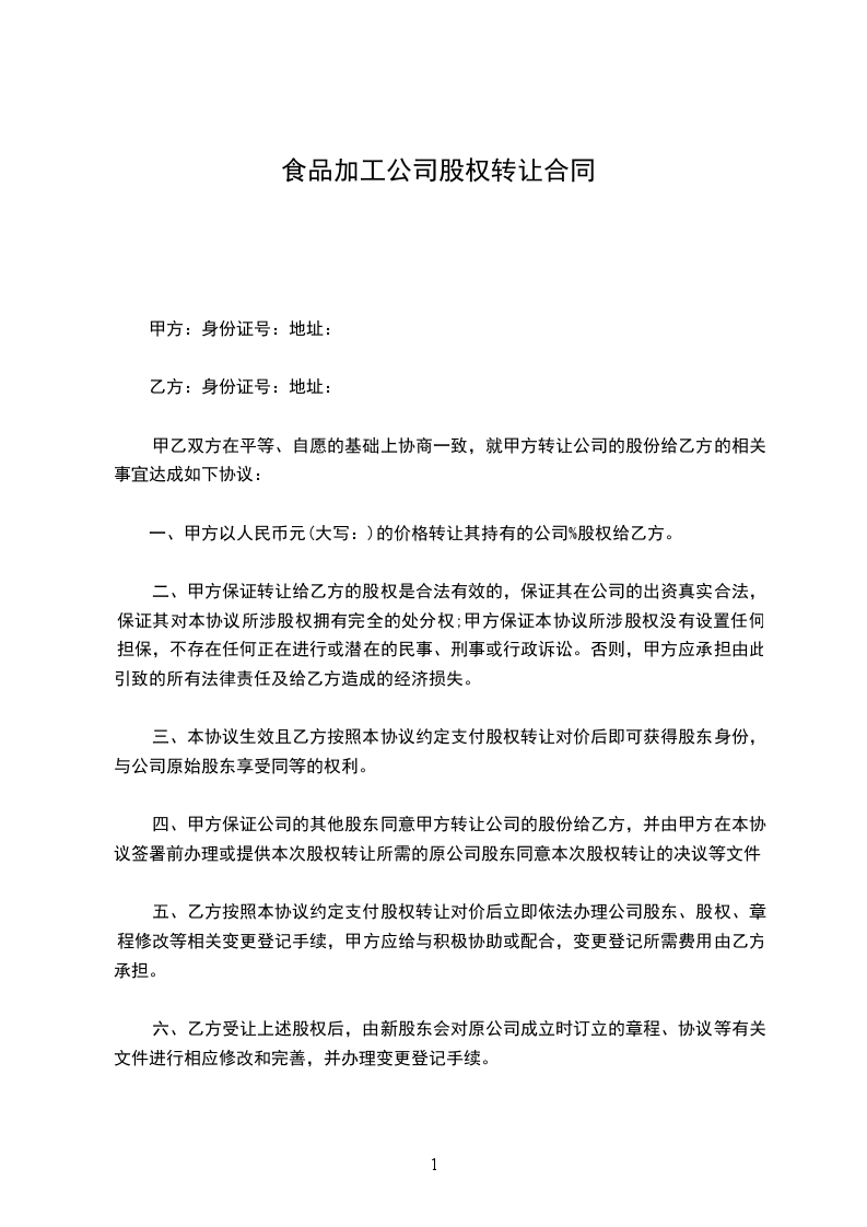 一、甲方以人民币_____元(大写:)的价格转让其持有的公司%股权给乙方。
