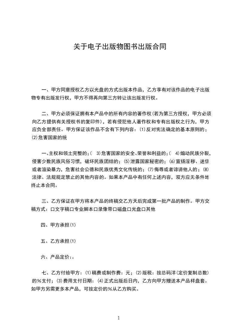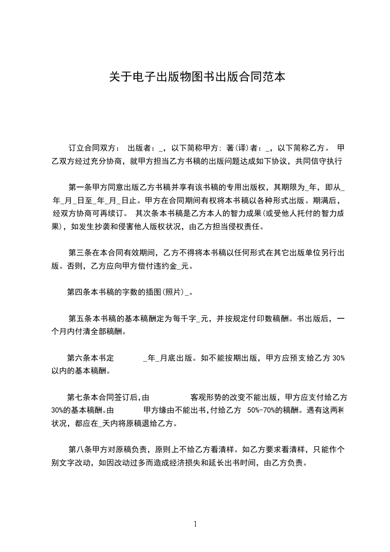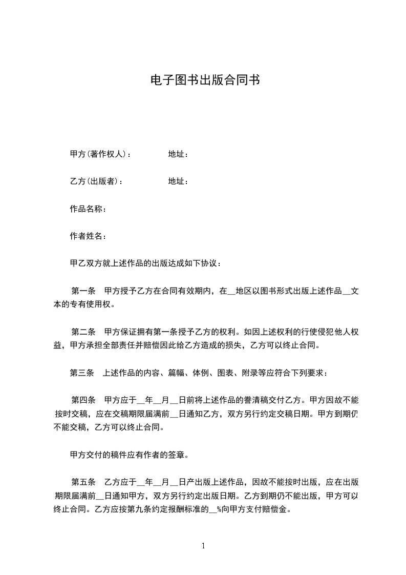 第三条在本合同有效期间,乙方不得将本书稿以任何形式在其它出版单位另行出版。否则,乙方应向甲方偿付违约金_元。