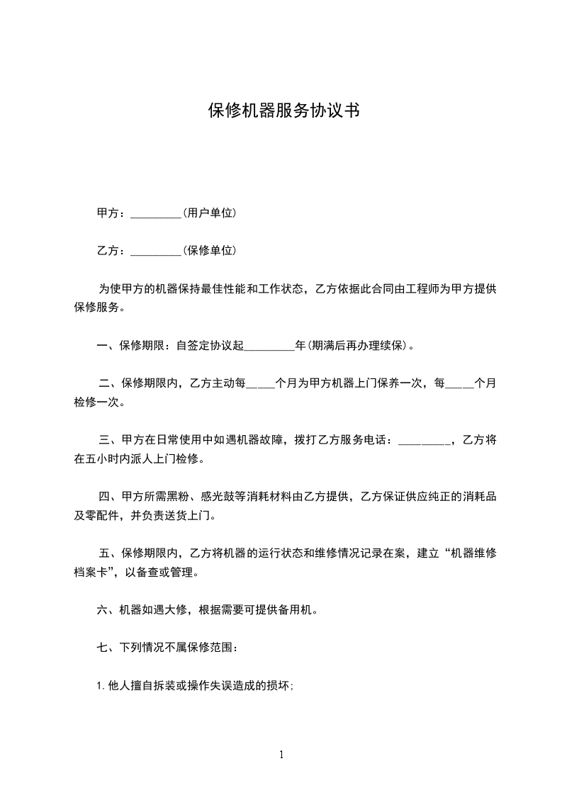 三、 合同期内甲方不再收取任何上门费,维修费。合同期内如有零配件损坏需要更换时,甲方以市场批发价为乙方更换,且负责保修,配件费用由乙方当日一次结清。