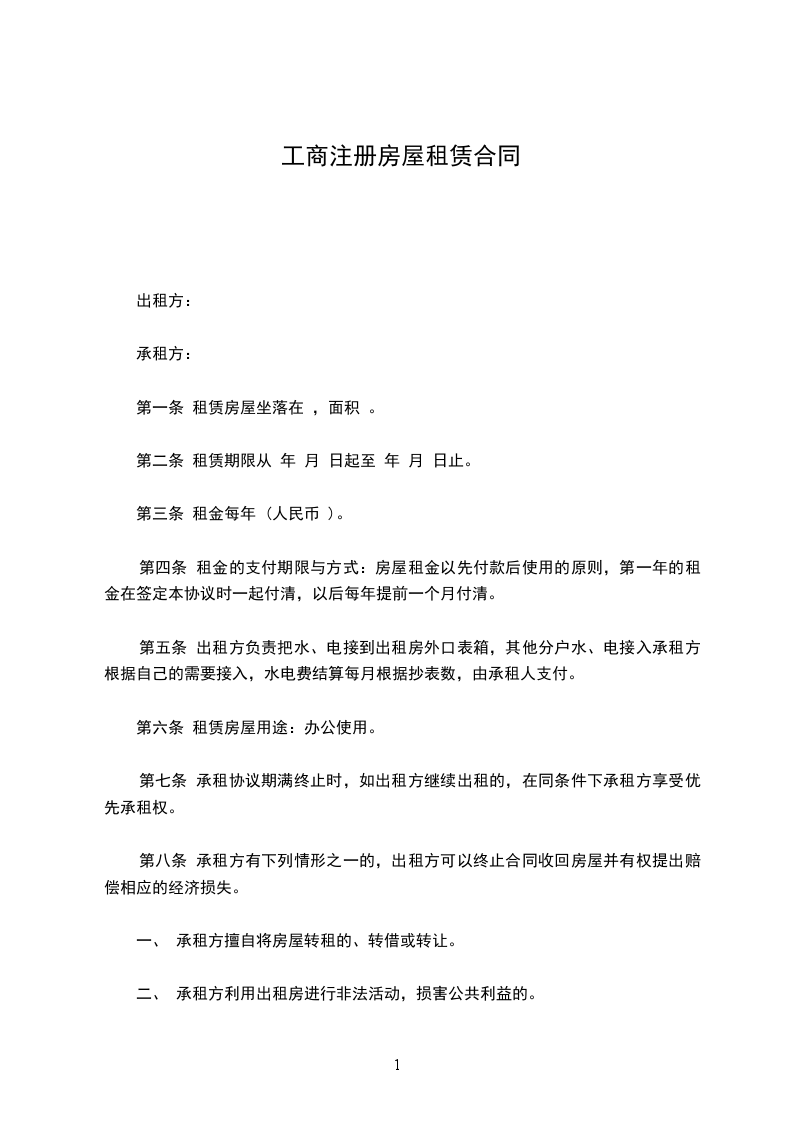 第六条 租赁房屋用途:办公使用。